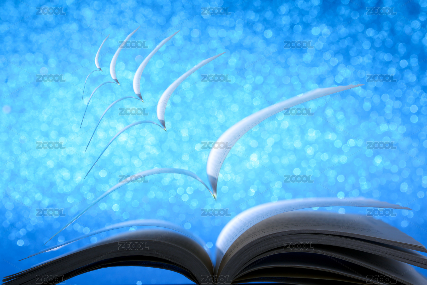 藍(lán)背景飛翔的書頁