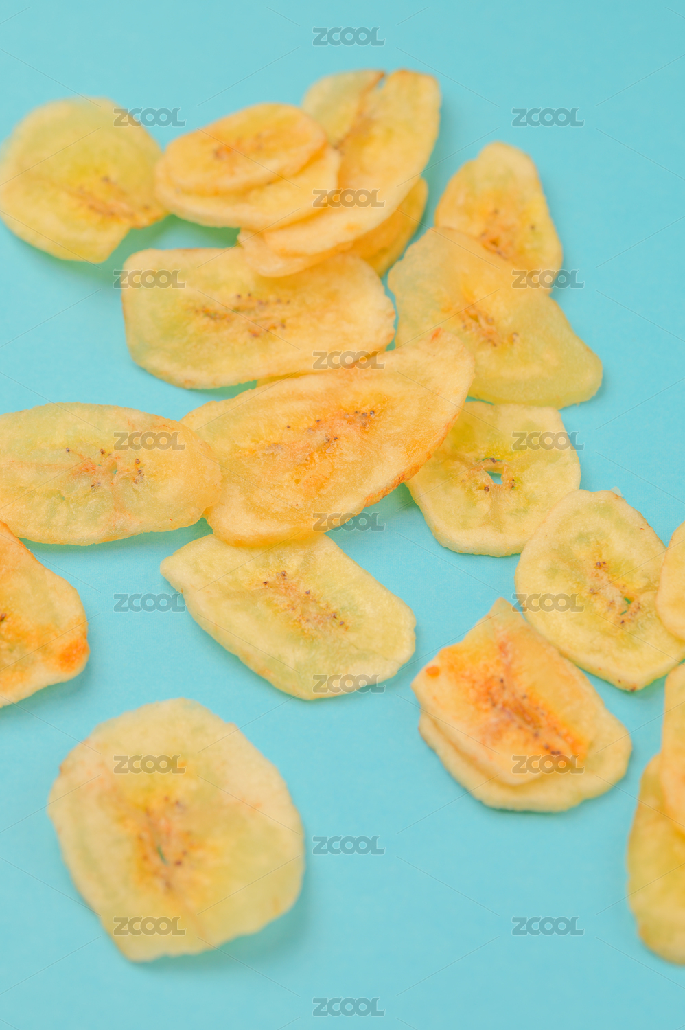 藍(lán)背景紙上的香蕉片