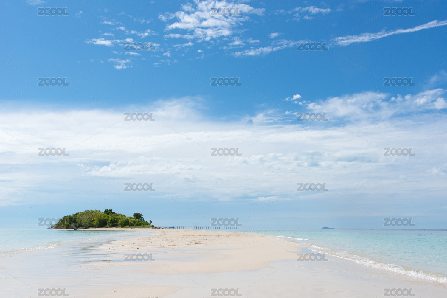 馬來西亞沙巴州斗湖市仙本那邦邦島景區(qū) 藍天白云下的淺海與小島