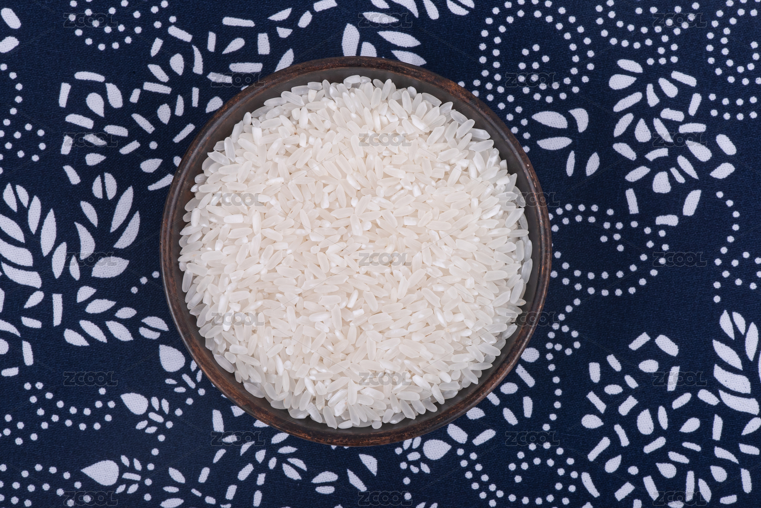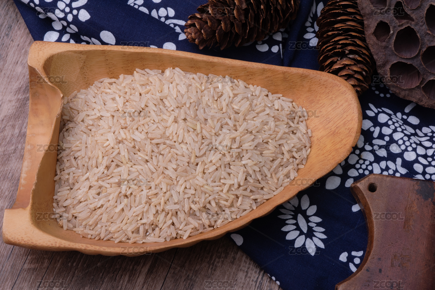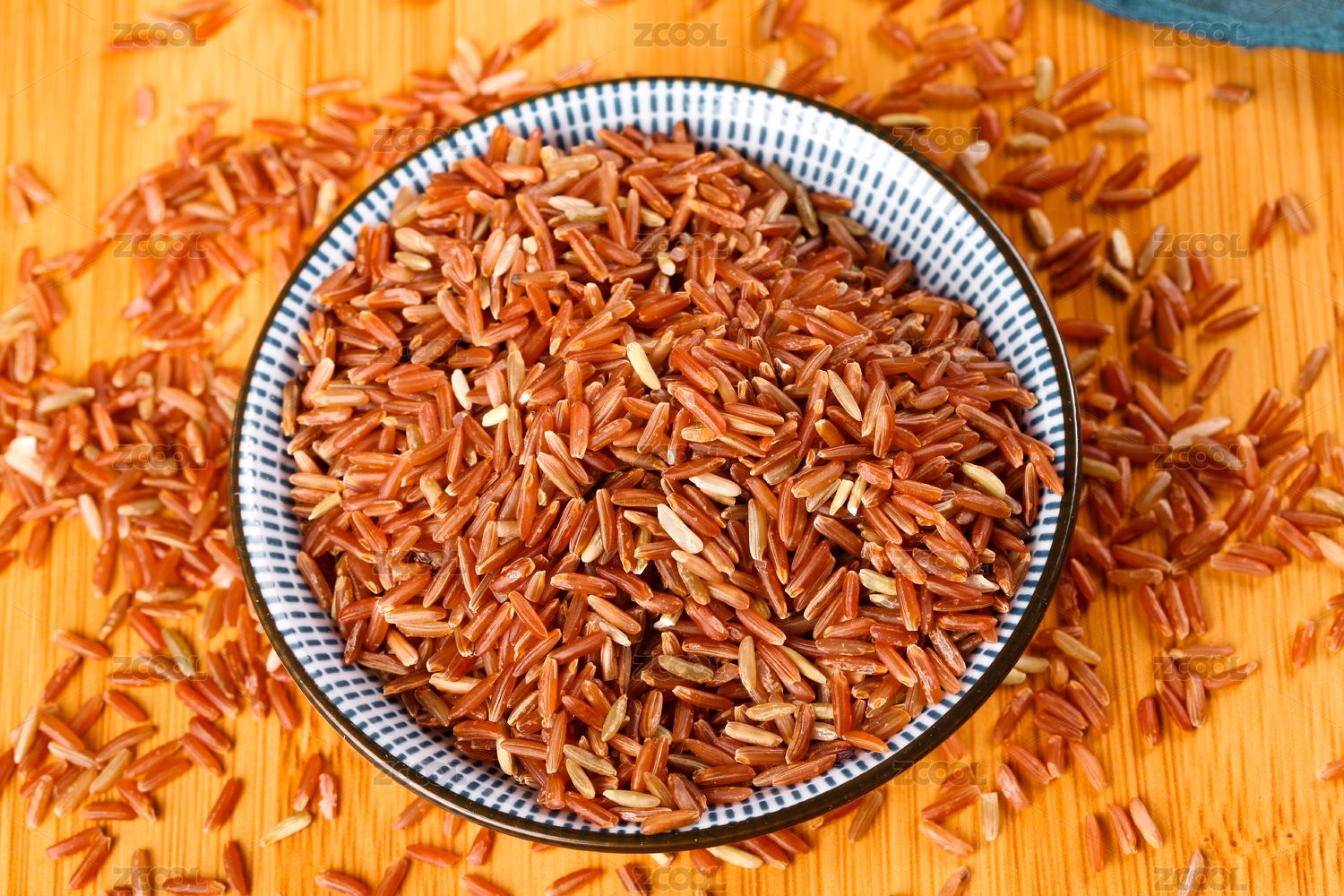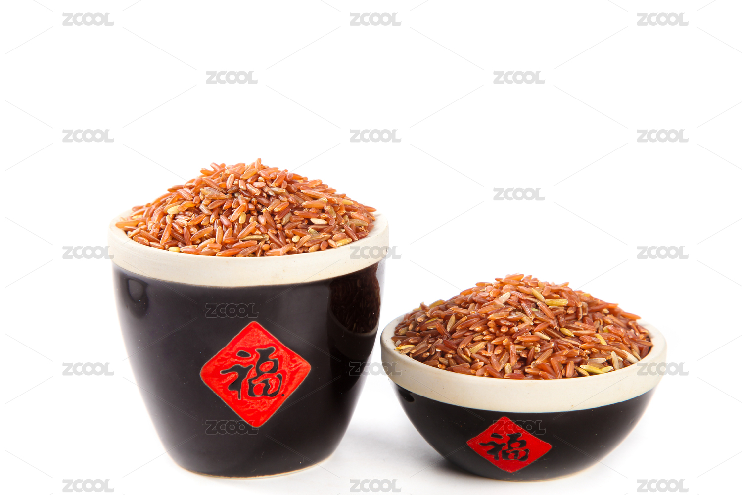 白底上缸里裝著洋縣紅香米和一碗紅米
