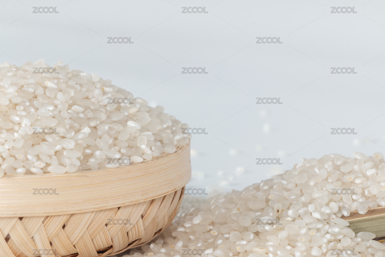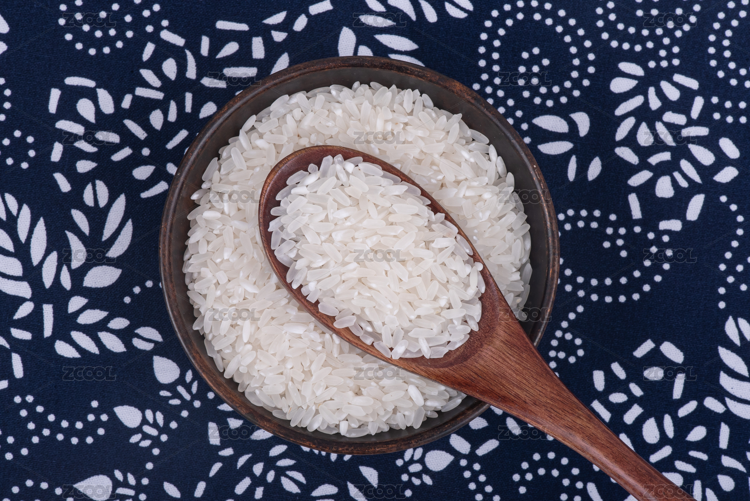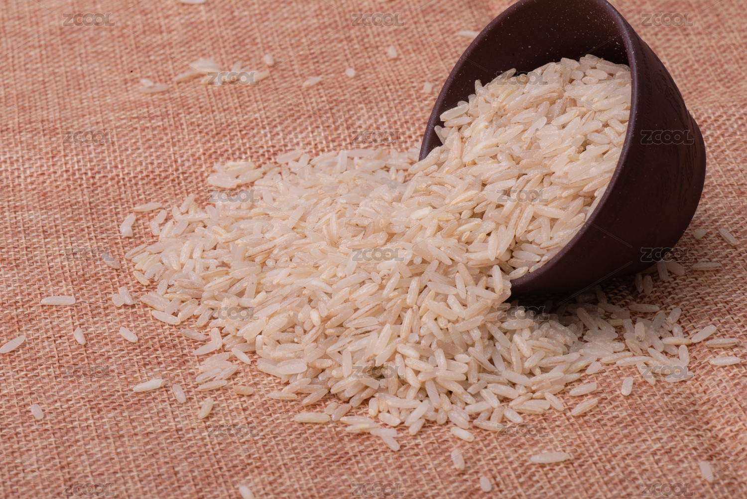 白底上缸里裝著洋縣紅香米和一碗紅米