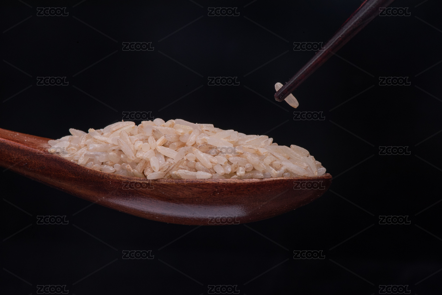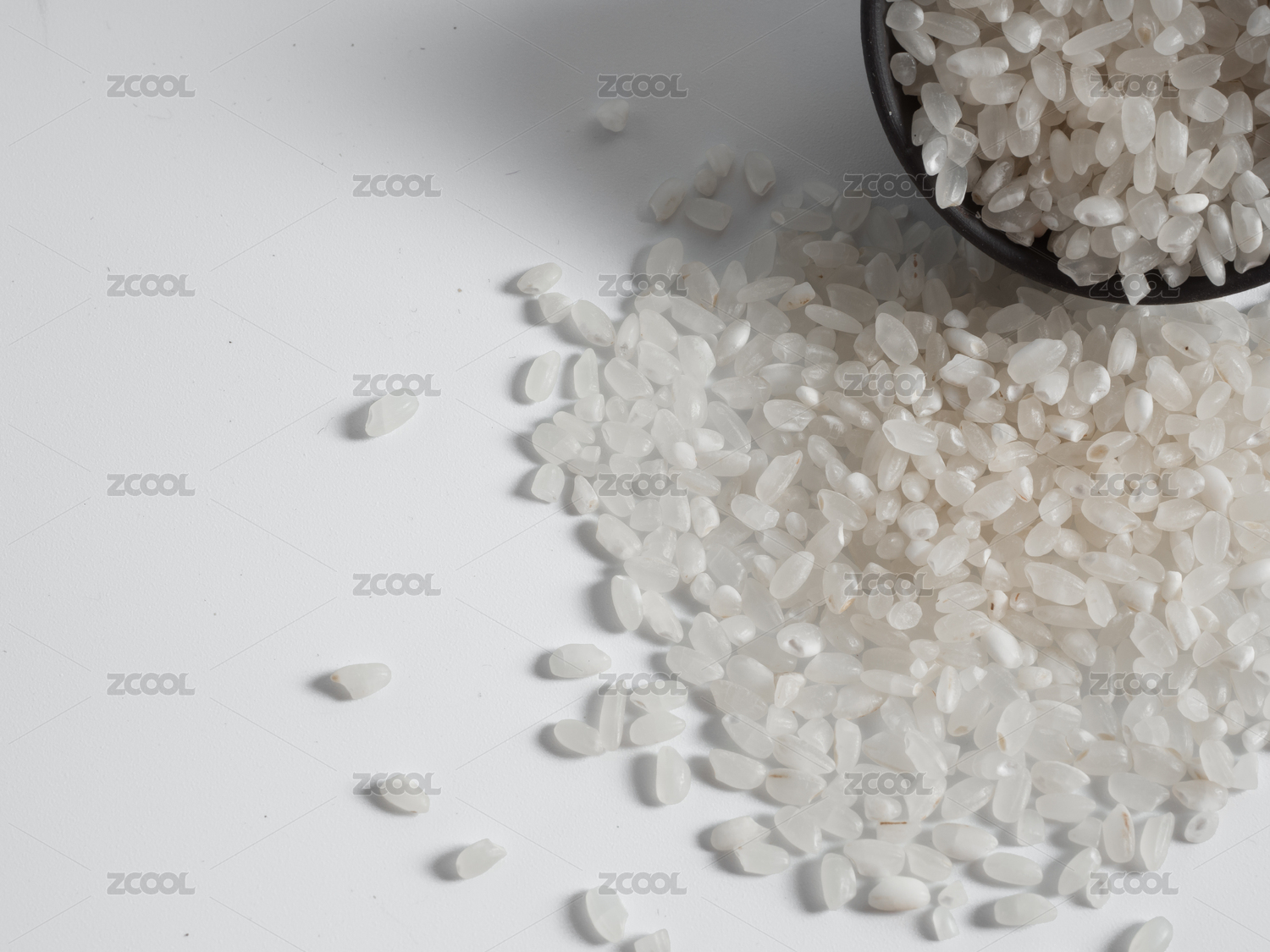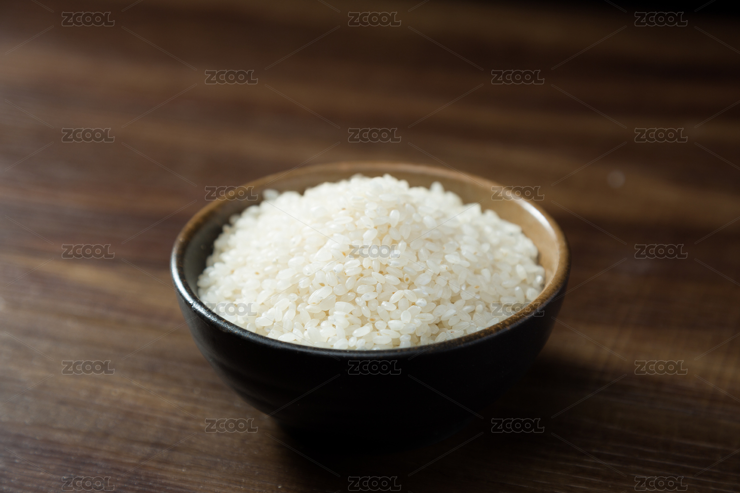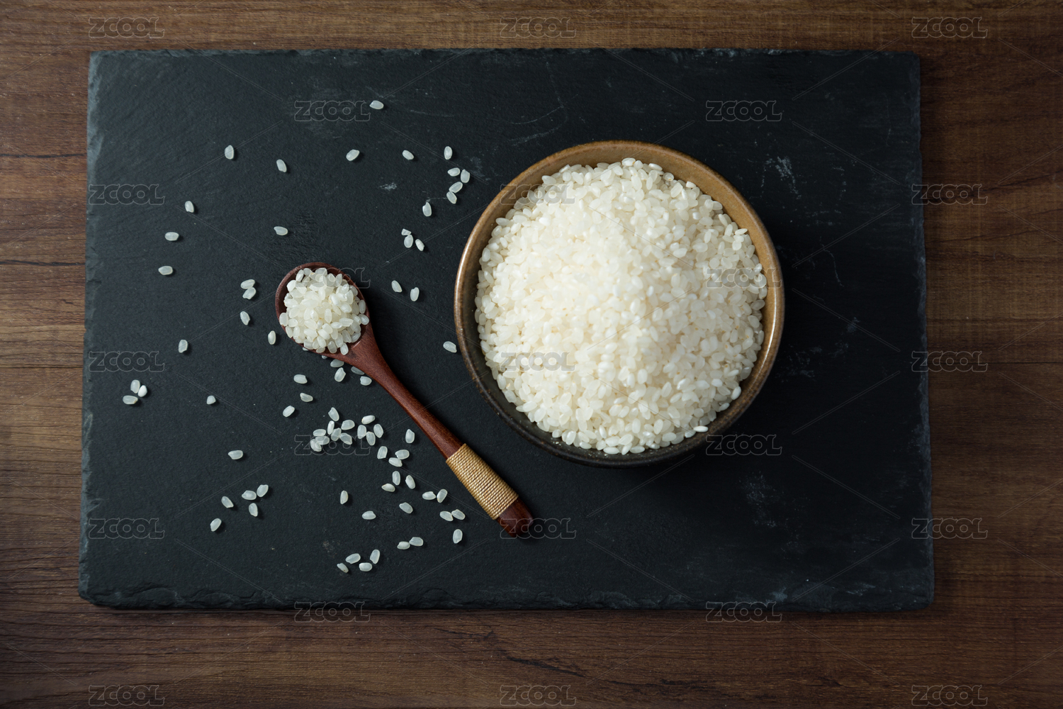 白底上缸里裝著洋縣紅香米和一碗紅米