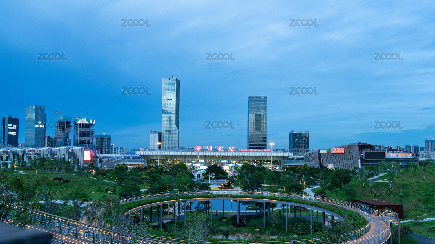 中國(guó)深圳北站商業(yè)中心高樓建筑和龍華綠廊公園