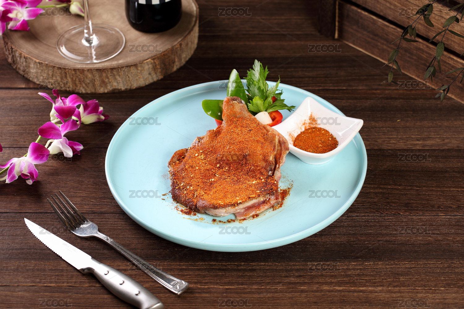 盤子上的黑椒雞排