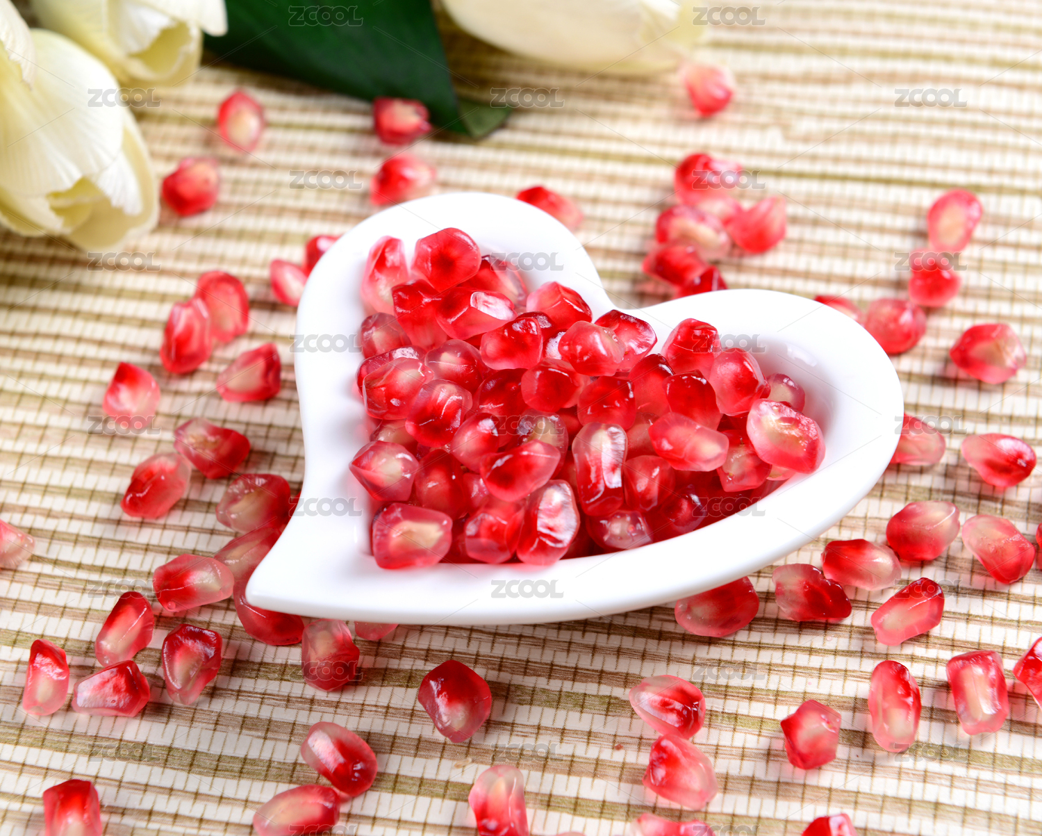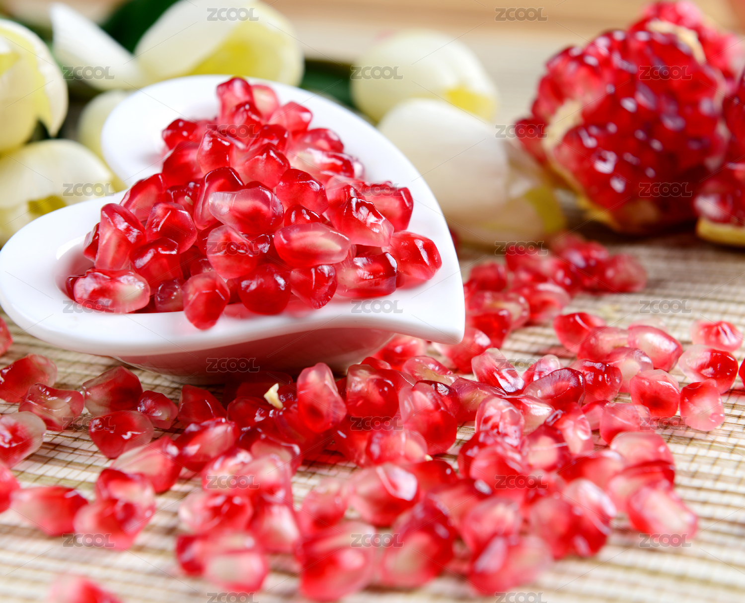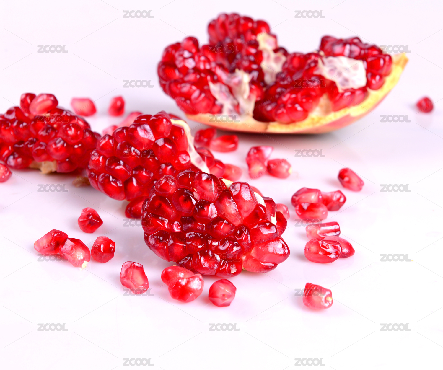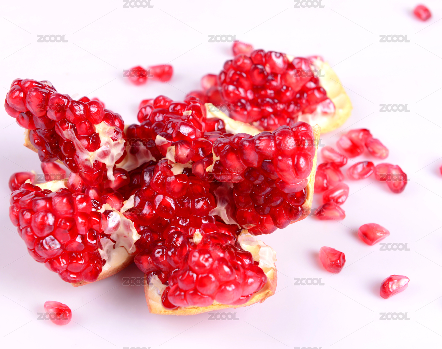 白底上的甜石榴果肉