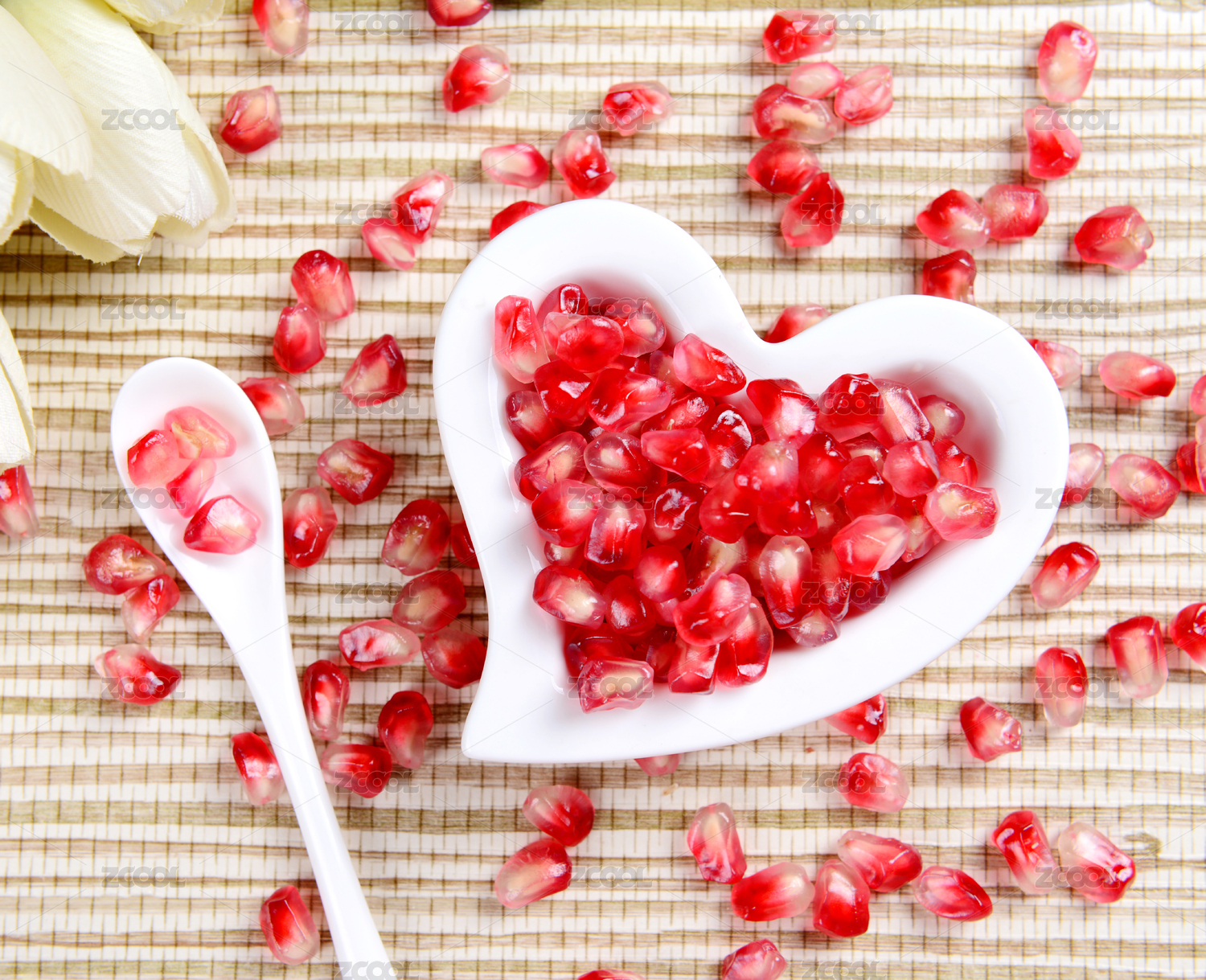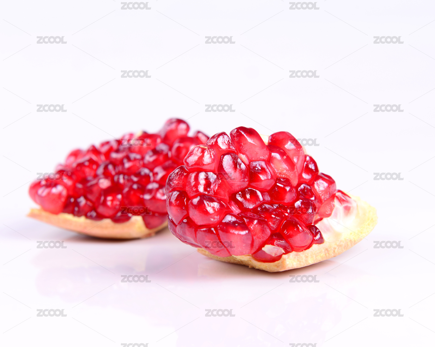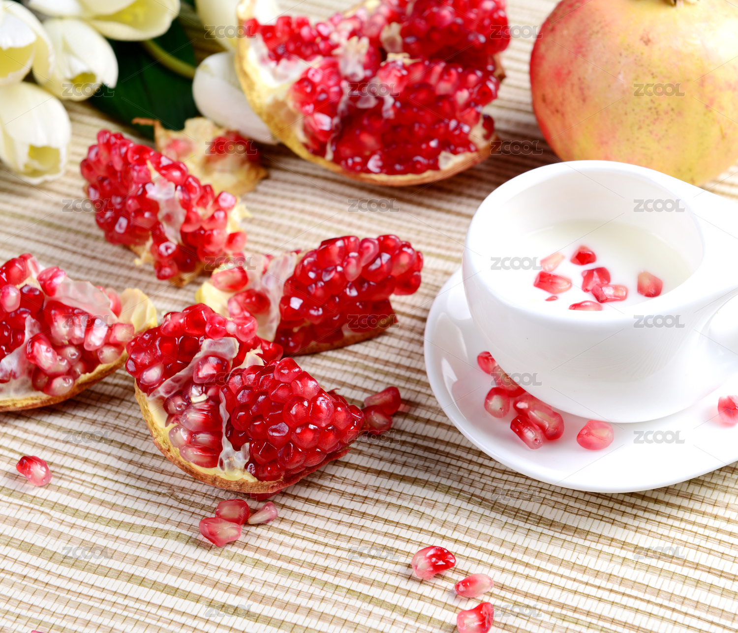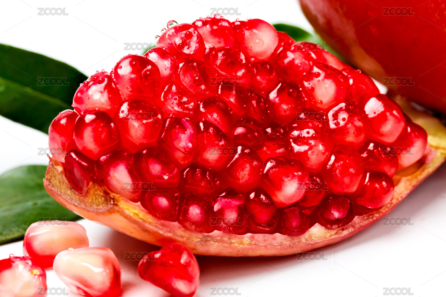 白底上的甜石榴果肉