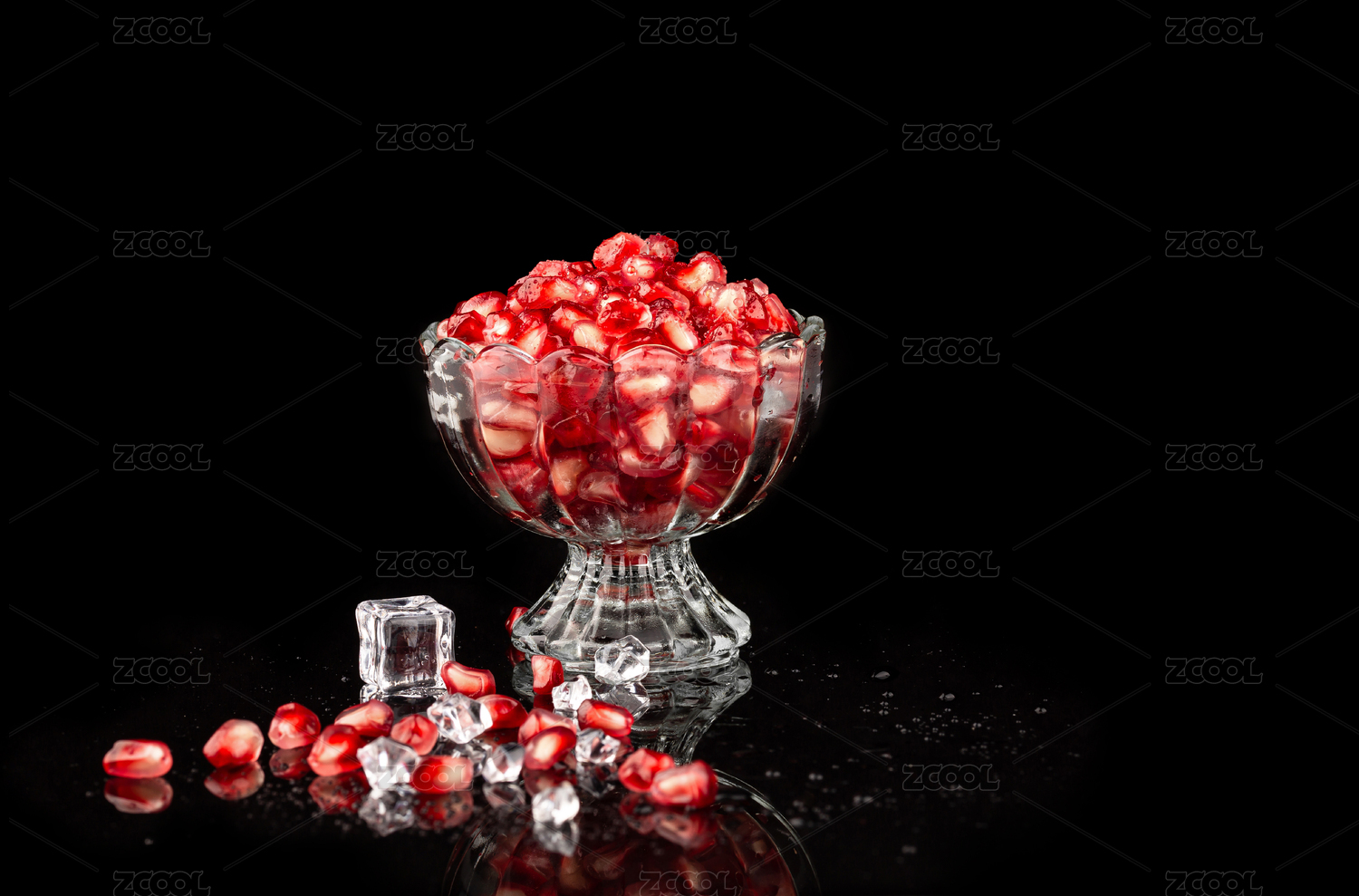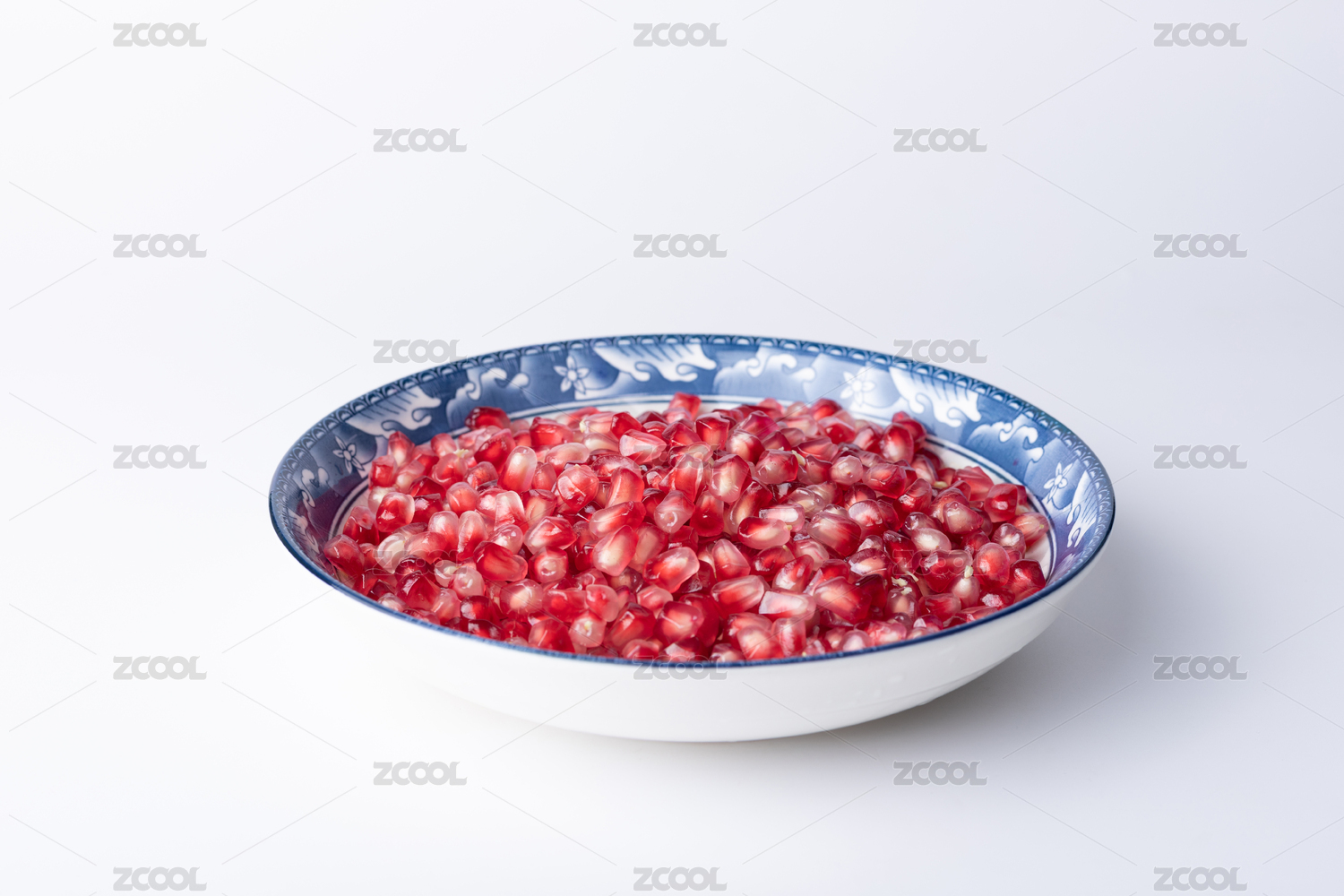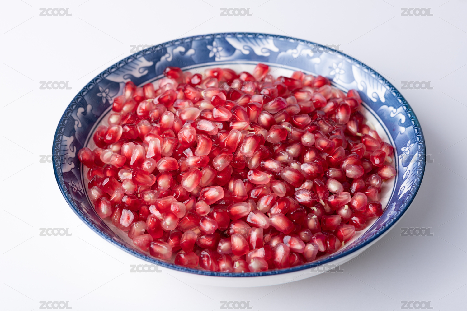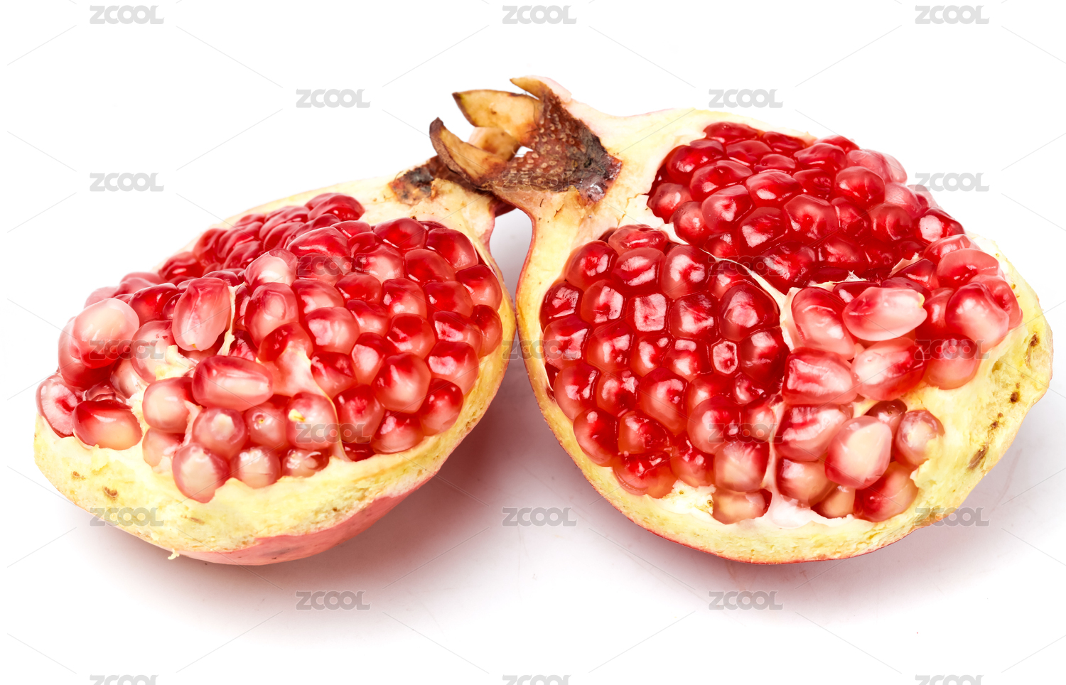 白底上的甜石榴果肉