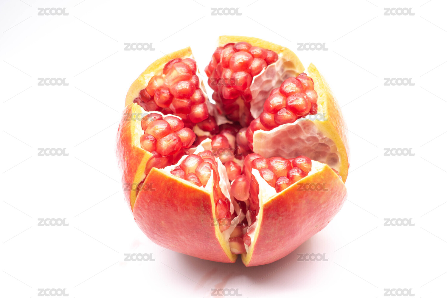 白底上的紅寶石石榴果肉