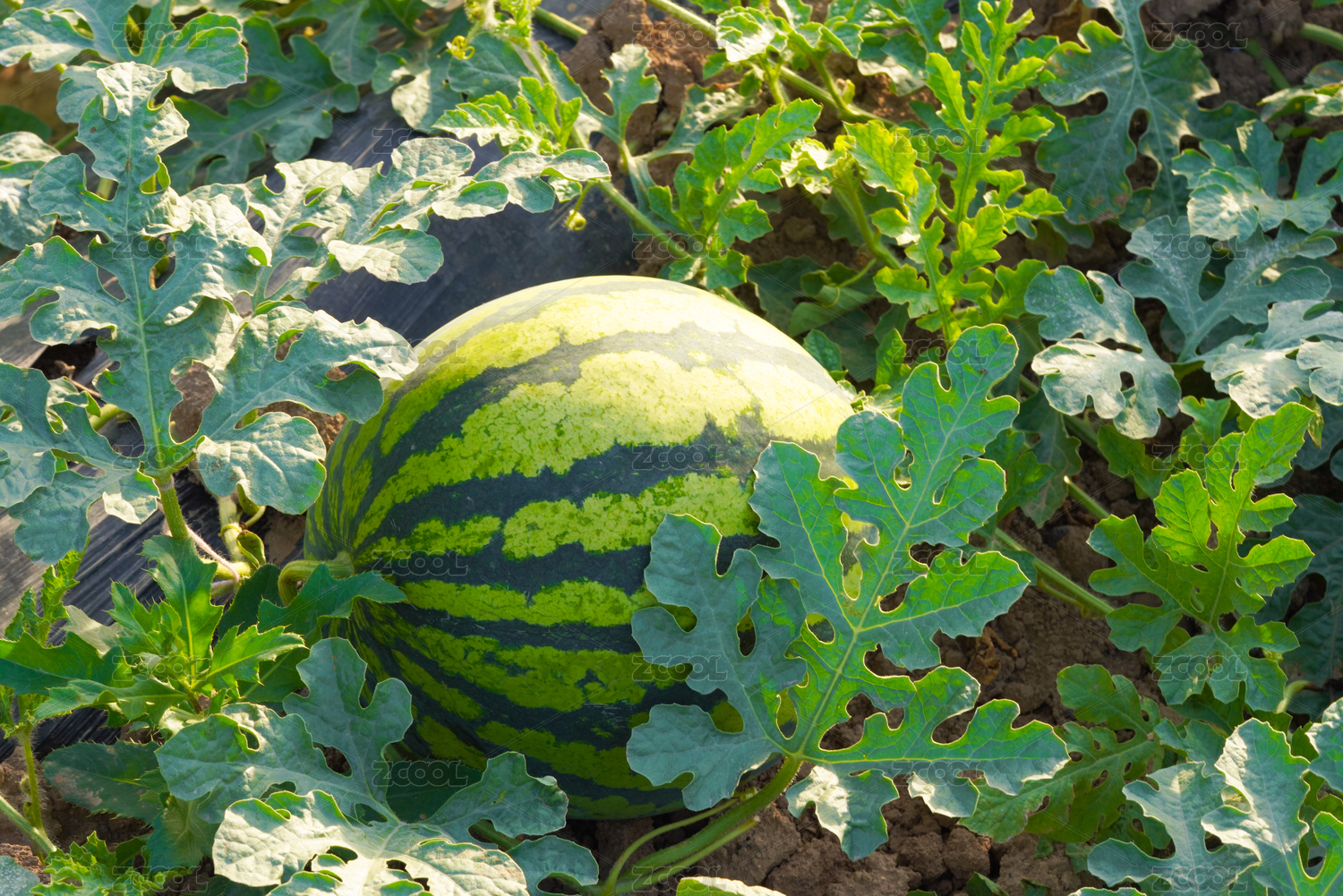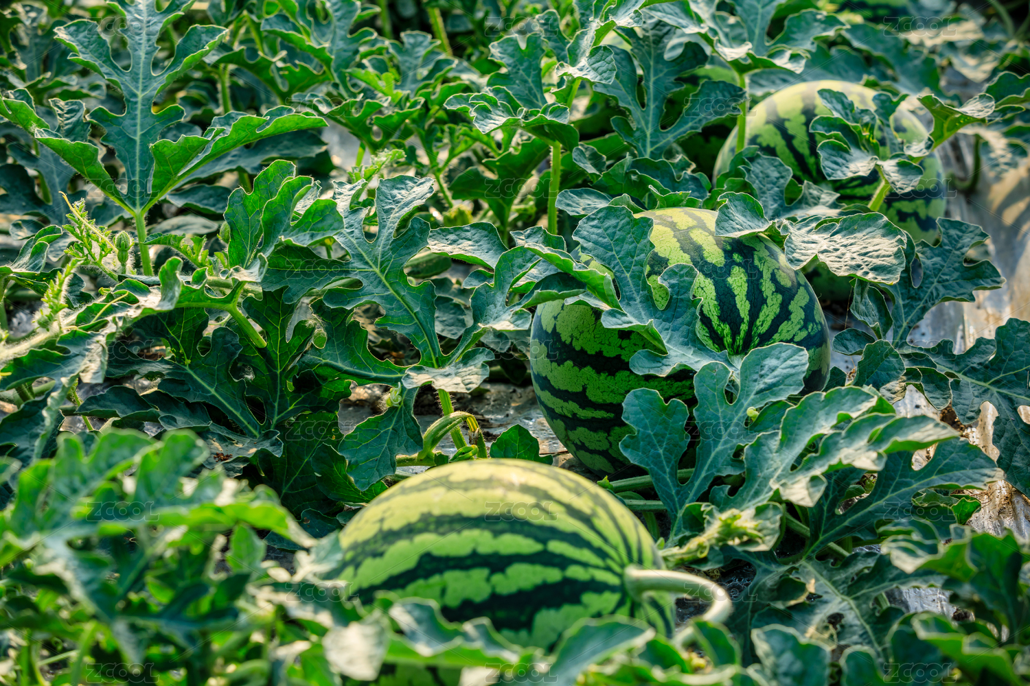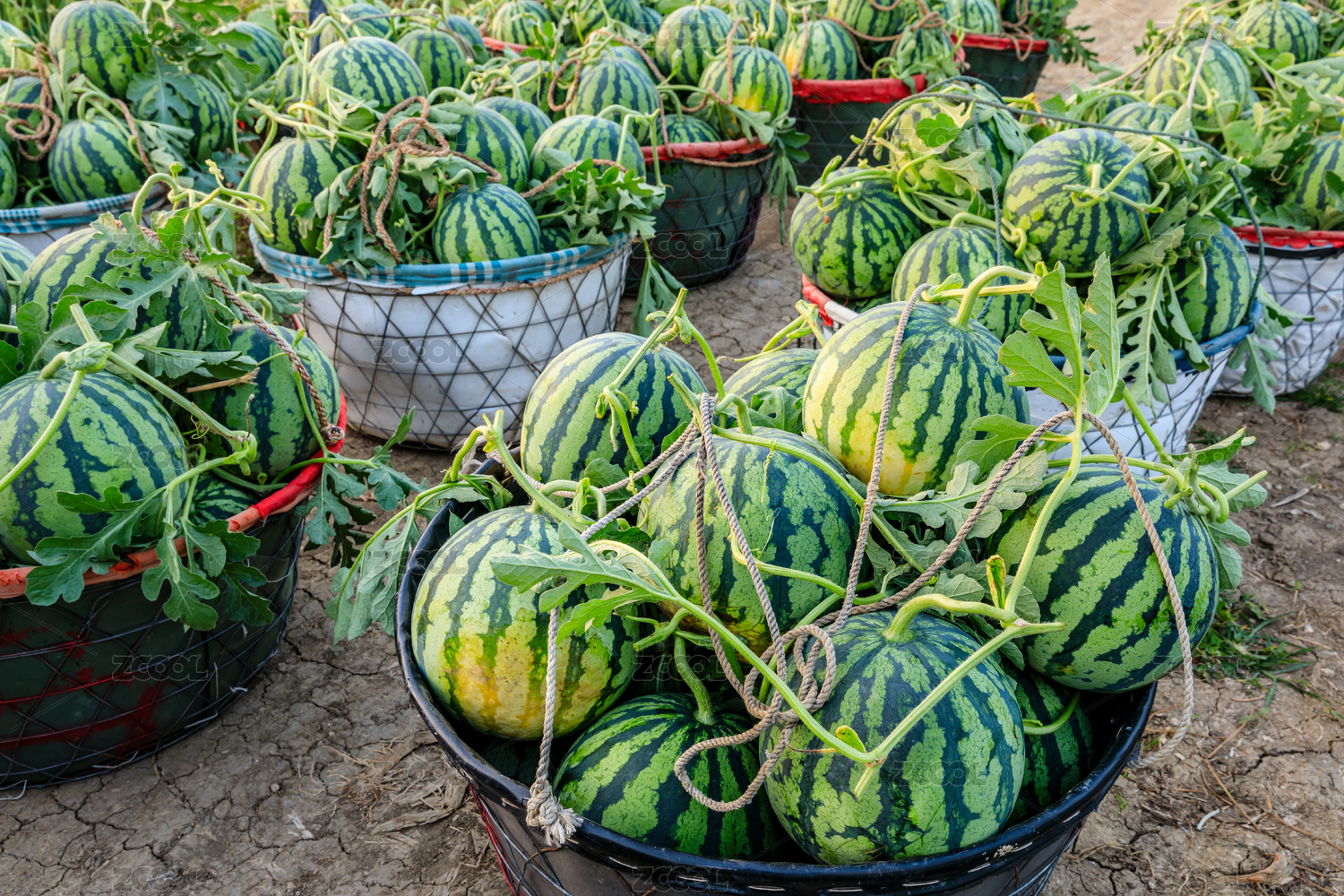 夏季西瓜地里采摘的新鮮西瓜果實(shí)