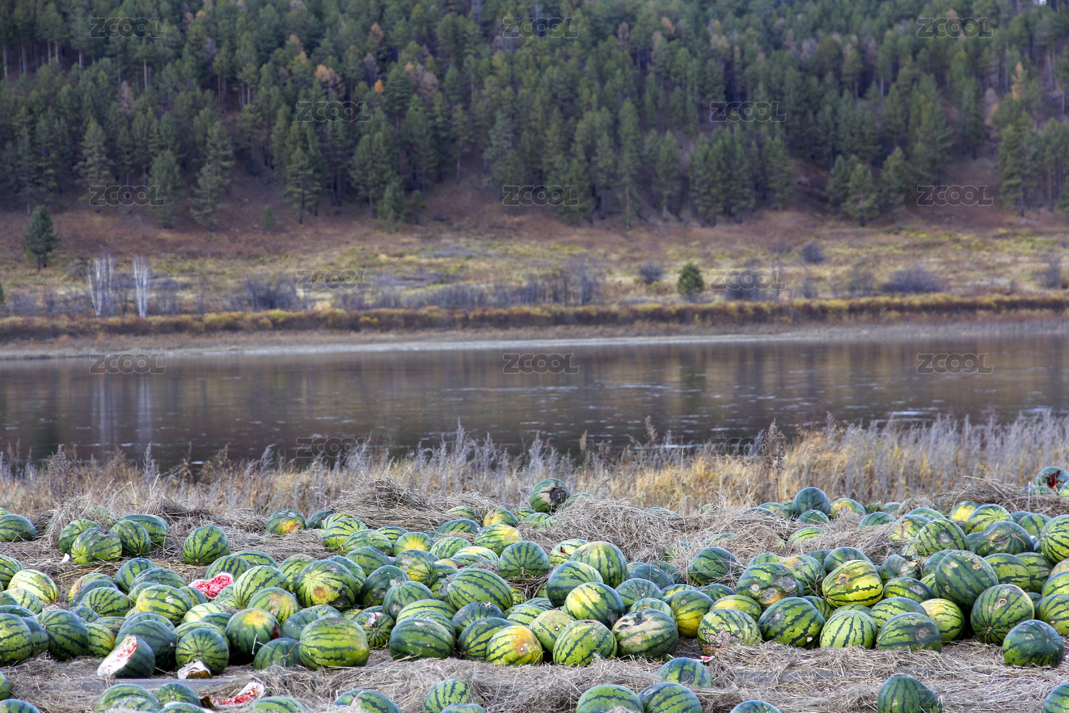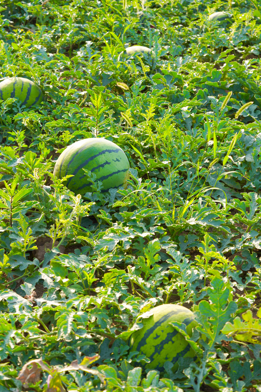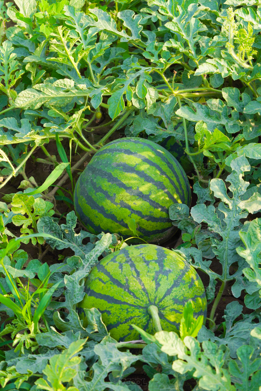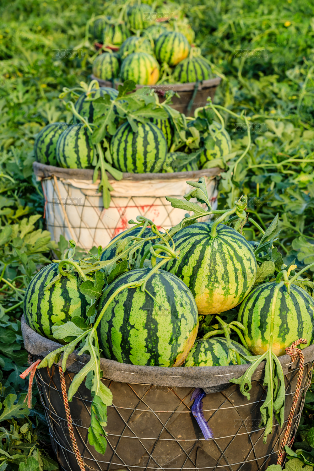 夏季西瓜地里采摘的新鮮西瓜果實(shí)