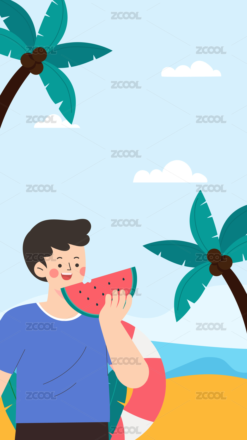 夏天吃西瓜的年輕人矢量插畫(huà)
