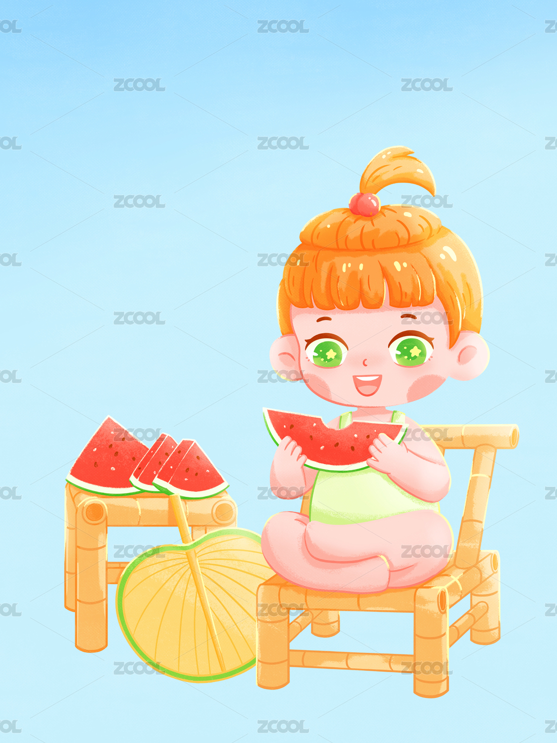 夏天解暑綠色水果西瓜果汁大暑節(jié)氣美食插畫(huà)