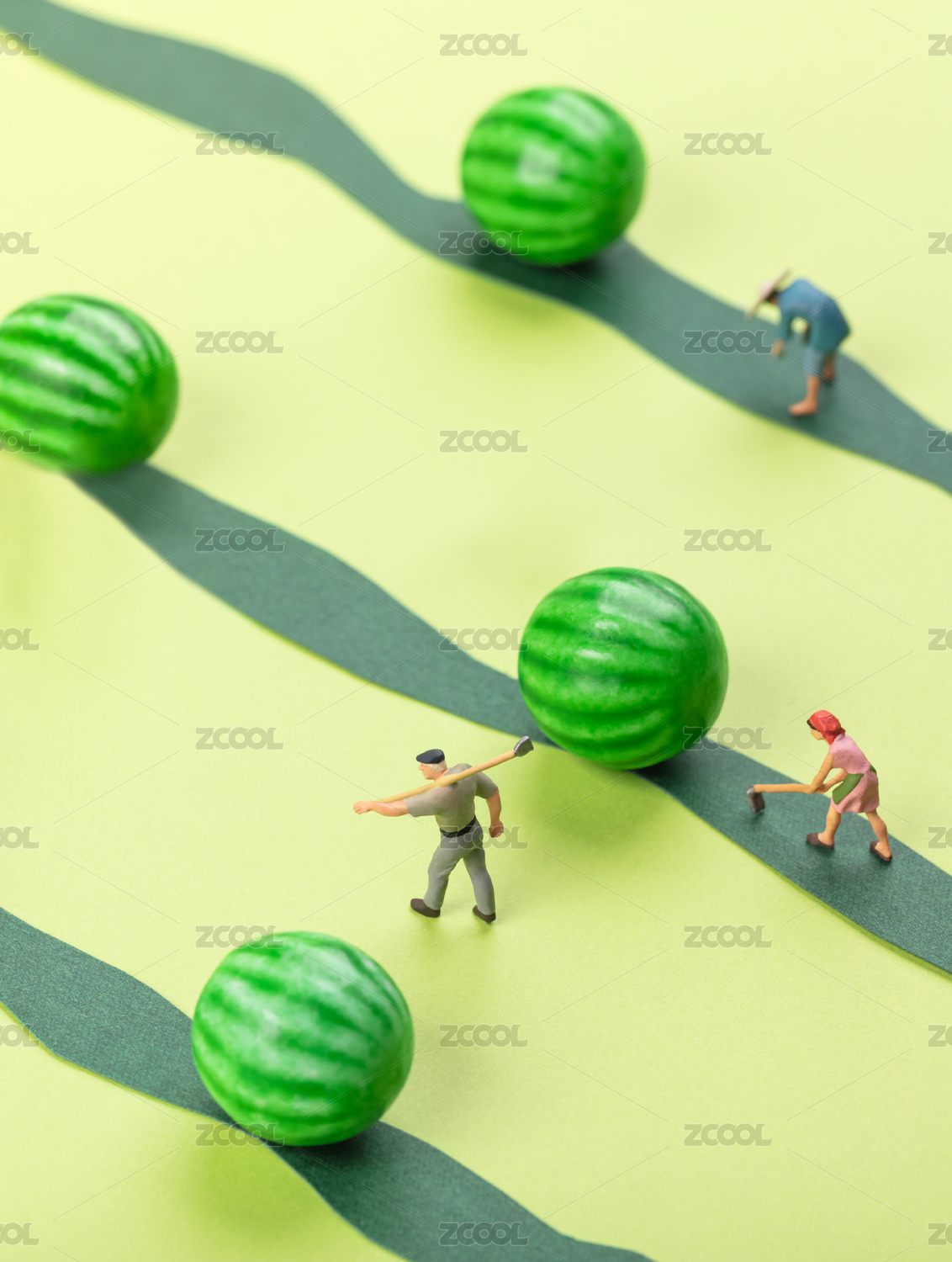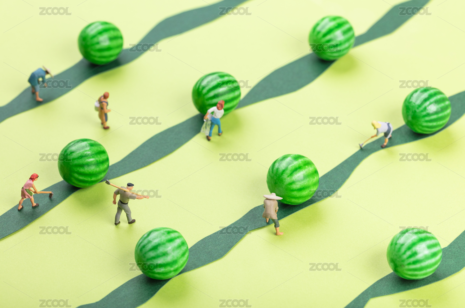 微縮景觀夏天鄉(xiāng)村豐收的西瓜地瓜農(nóng)
