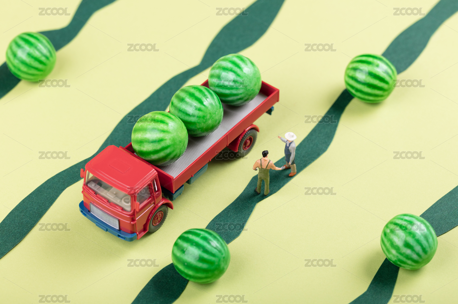 微縮景觀夏天鄉(xiāng)村豐收的西瓜地瓜農(nóng)貨運(yùn)汽車