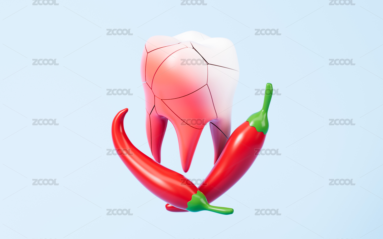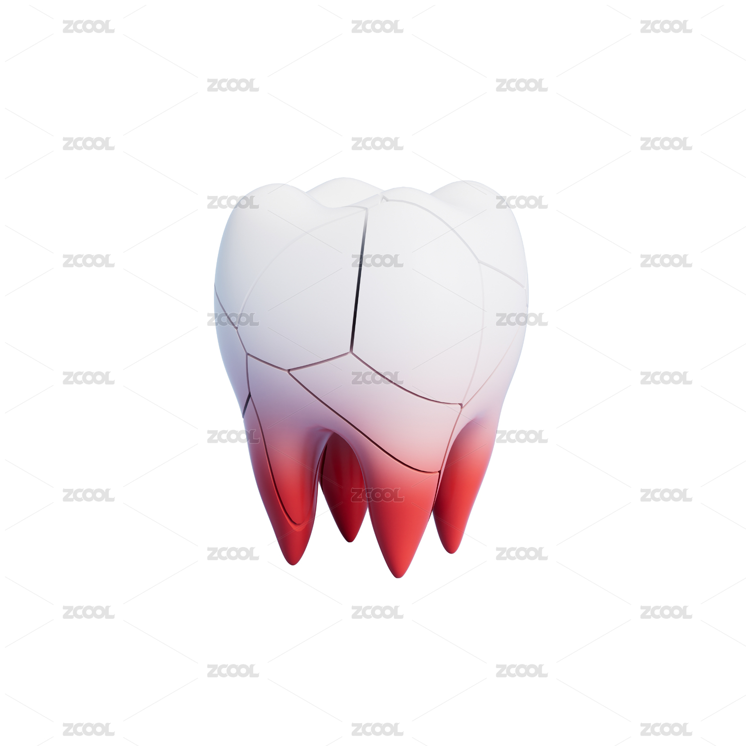 卡通牙齒紅腫口腔健康概念3D渲染