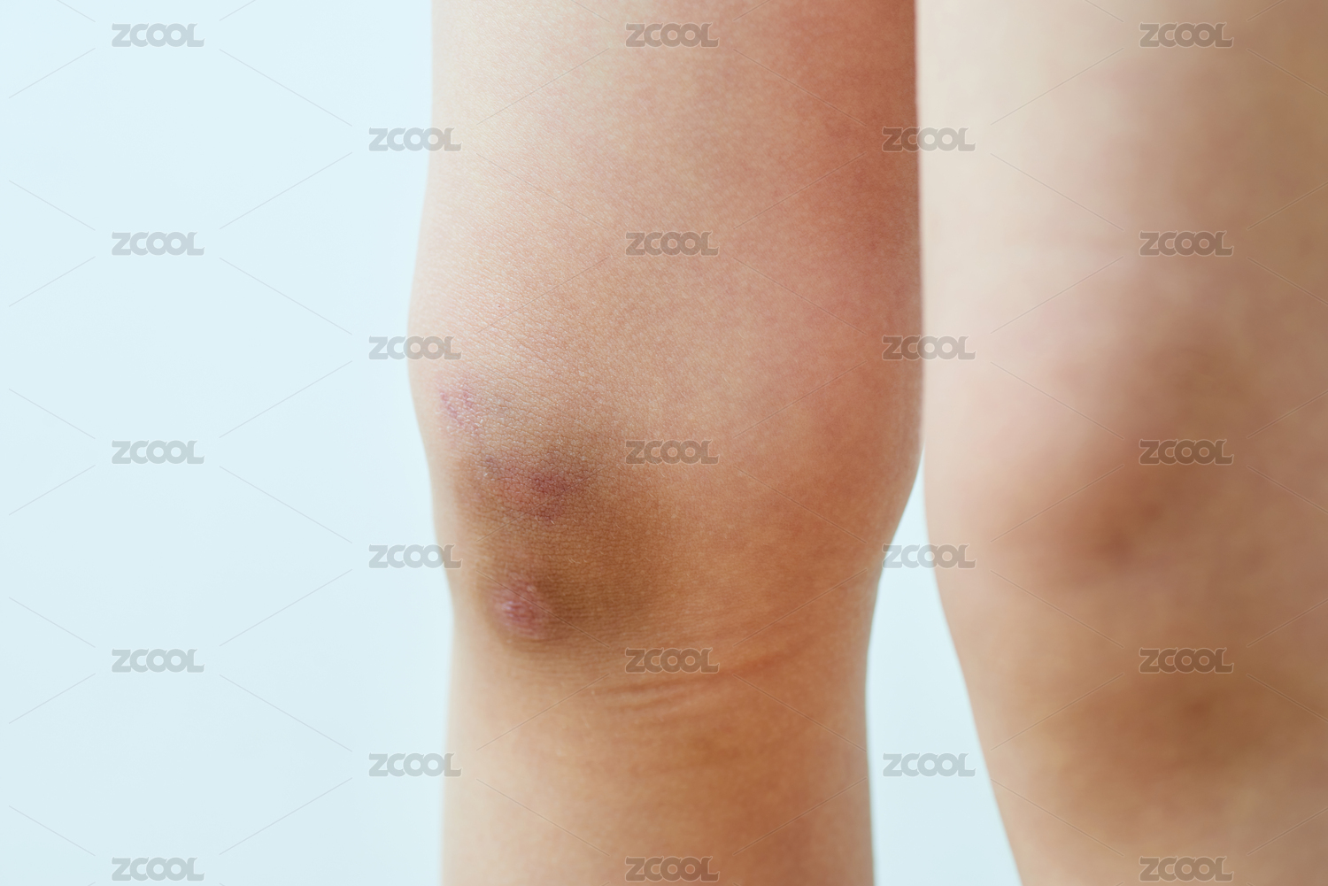 幼兒因摔傷而紅腫淤青的膝蓋