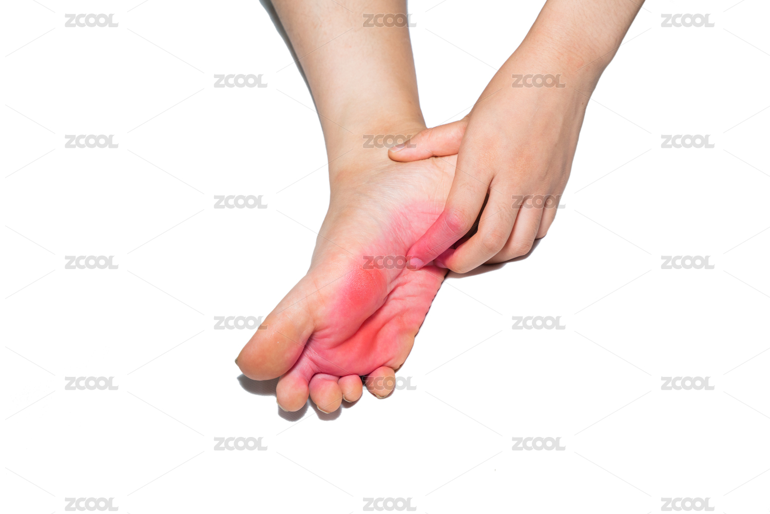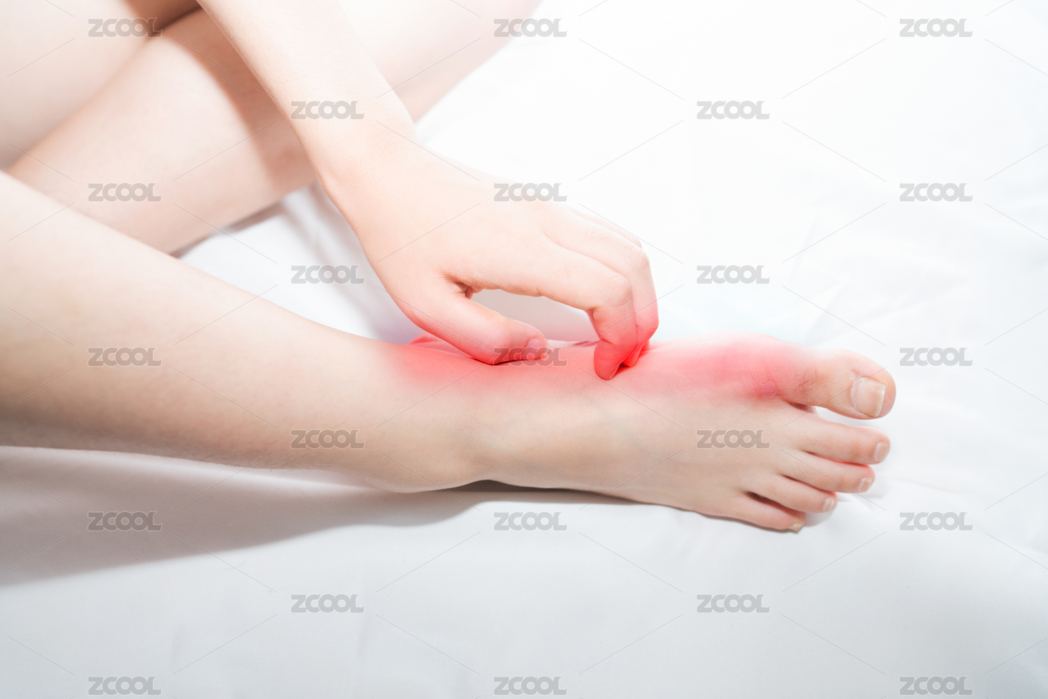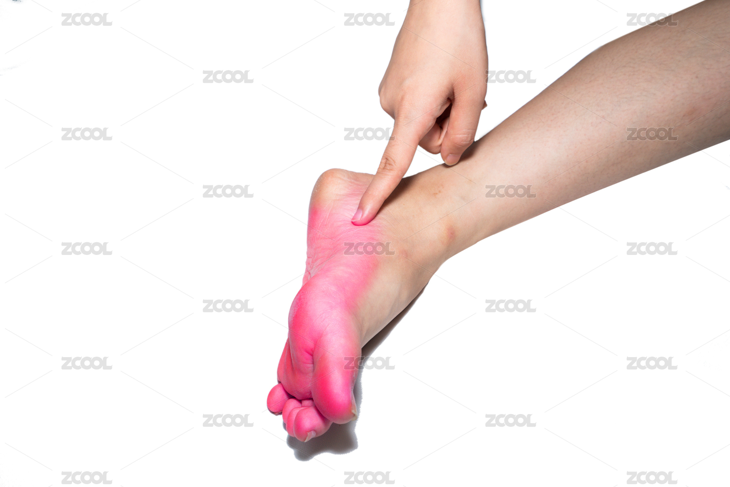 一個(gè)人腳部紅腫癢癢正在撓癢癢疑似得了腳氣香港腳灰指甲棚拍白色背景