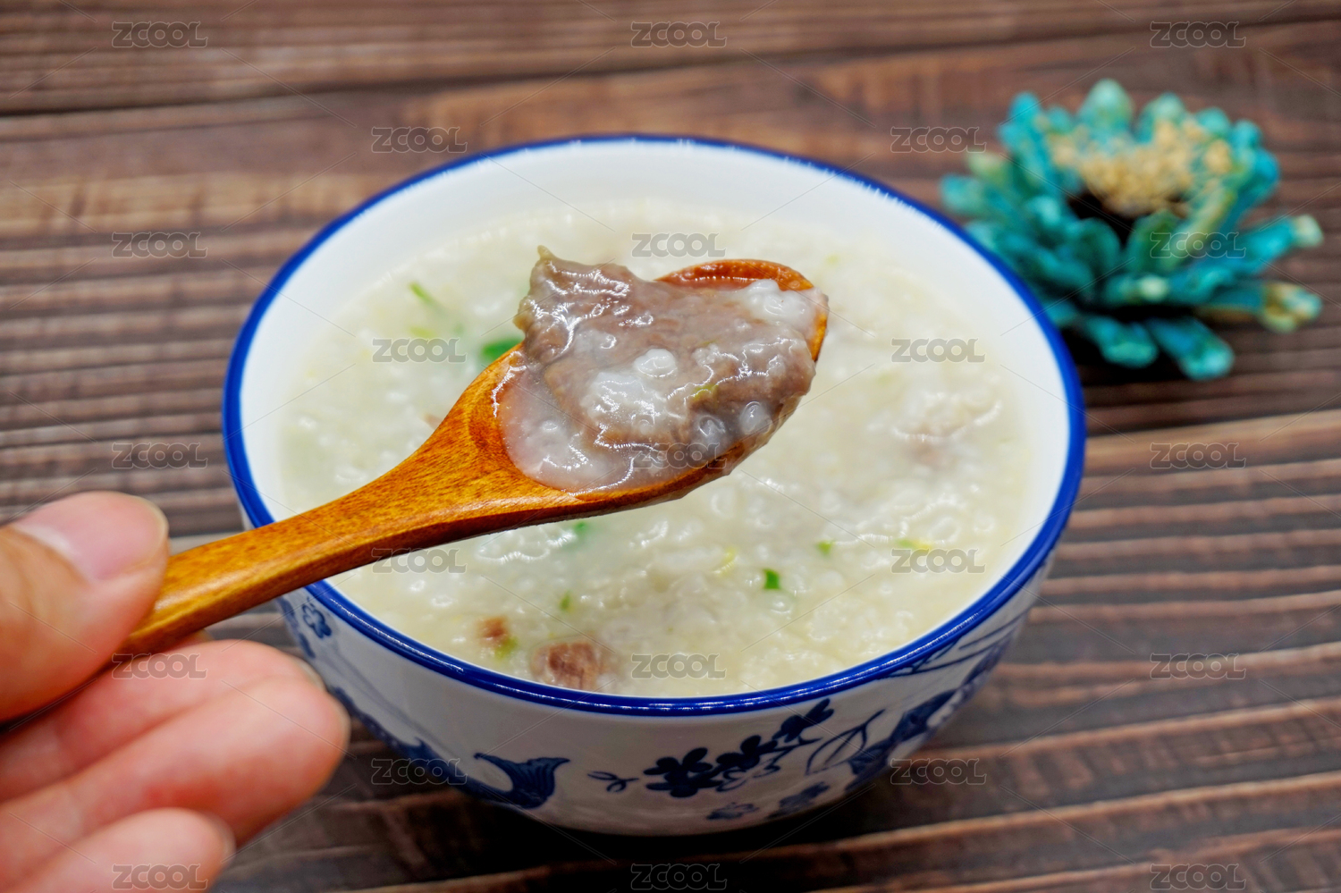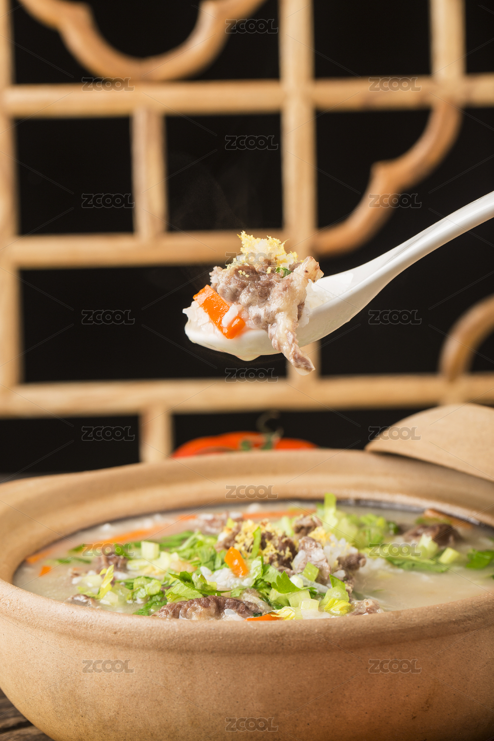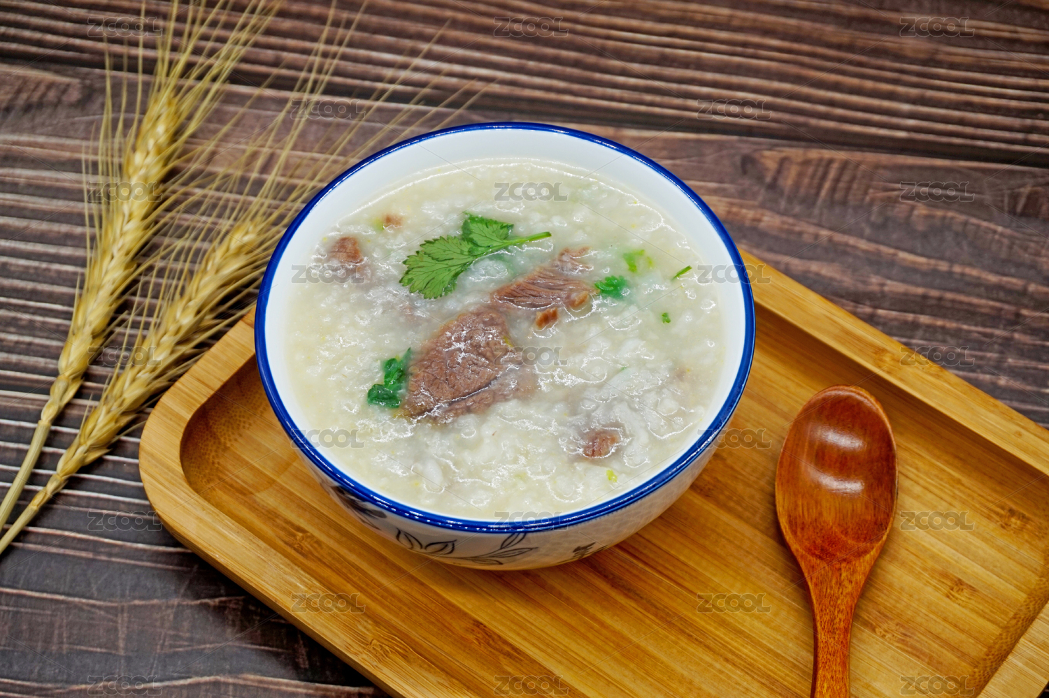 中國(guó)廣州粵式點(diǎn)心-牛肉粥特寫