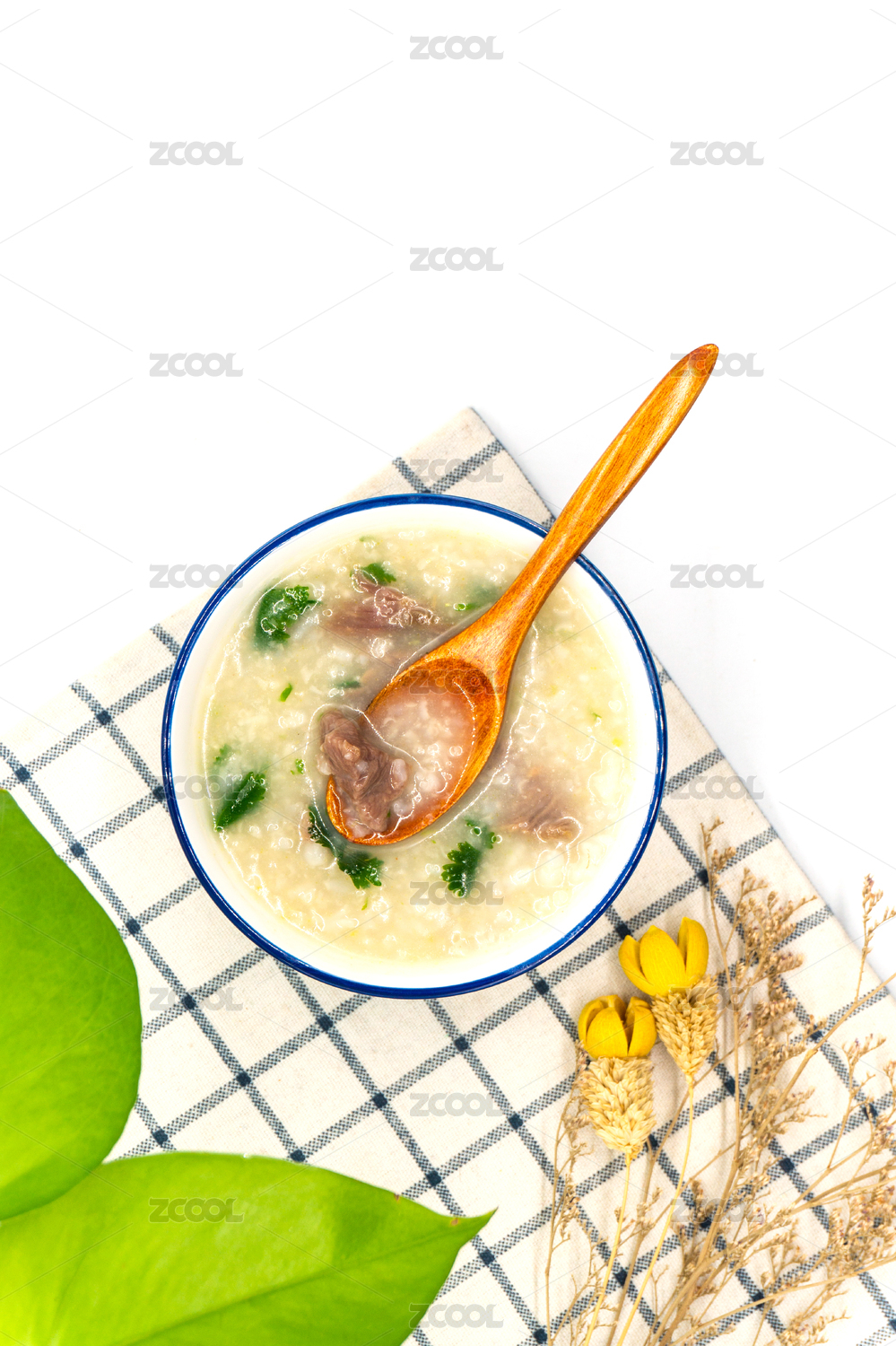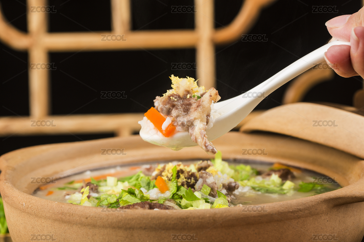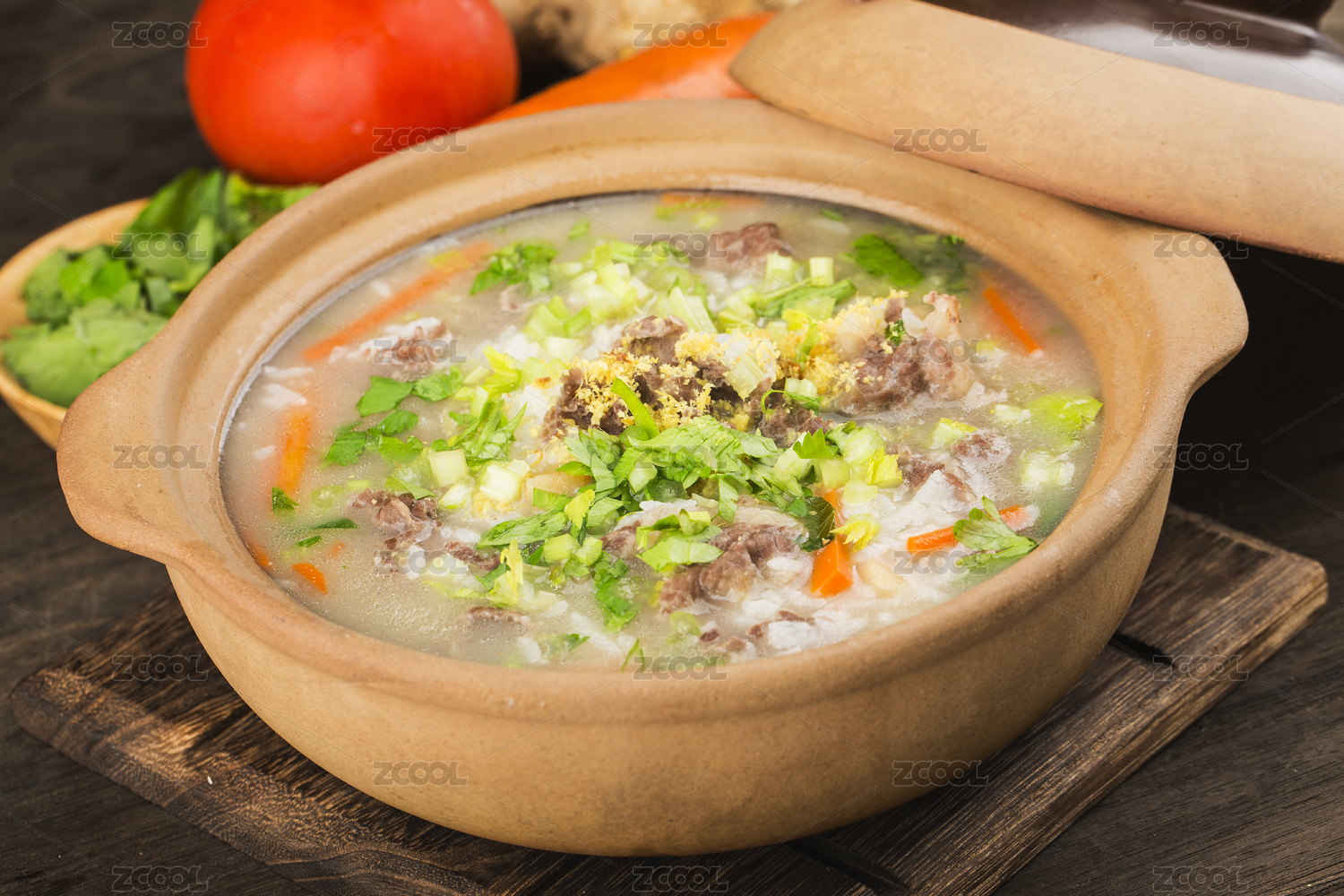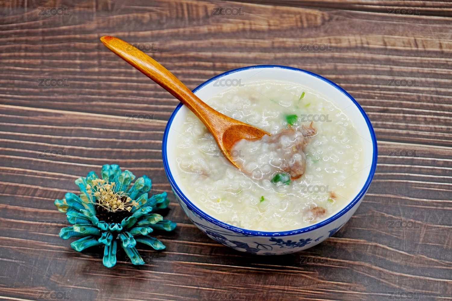 中國(guó)廣州粵式點(diǎn)心-牛肉粥特寫