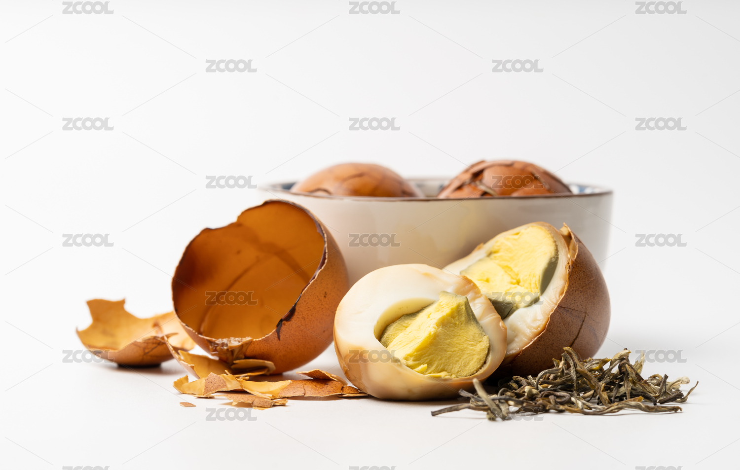 純白色背景下的家庭茶葉鹵蛋