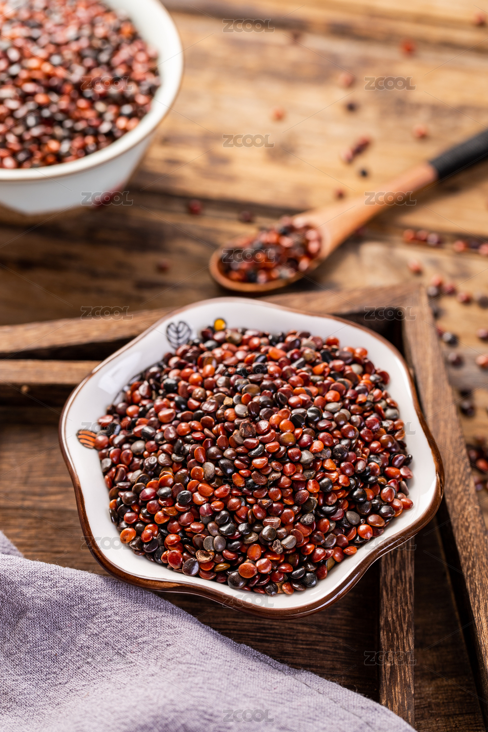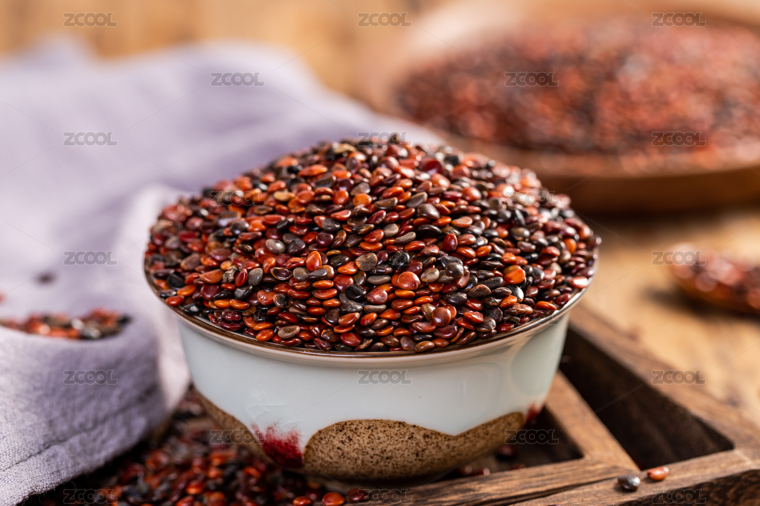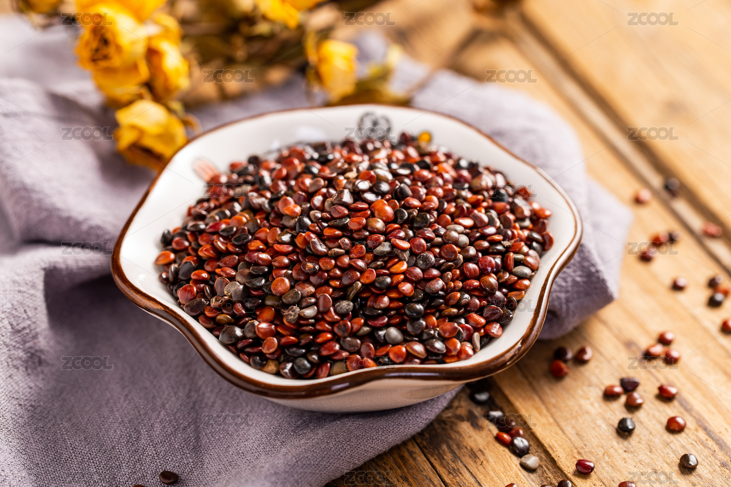 木板背景上滿滿一碗中藥材枳椇子