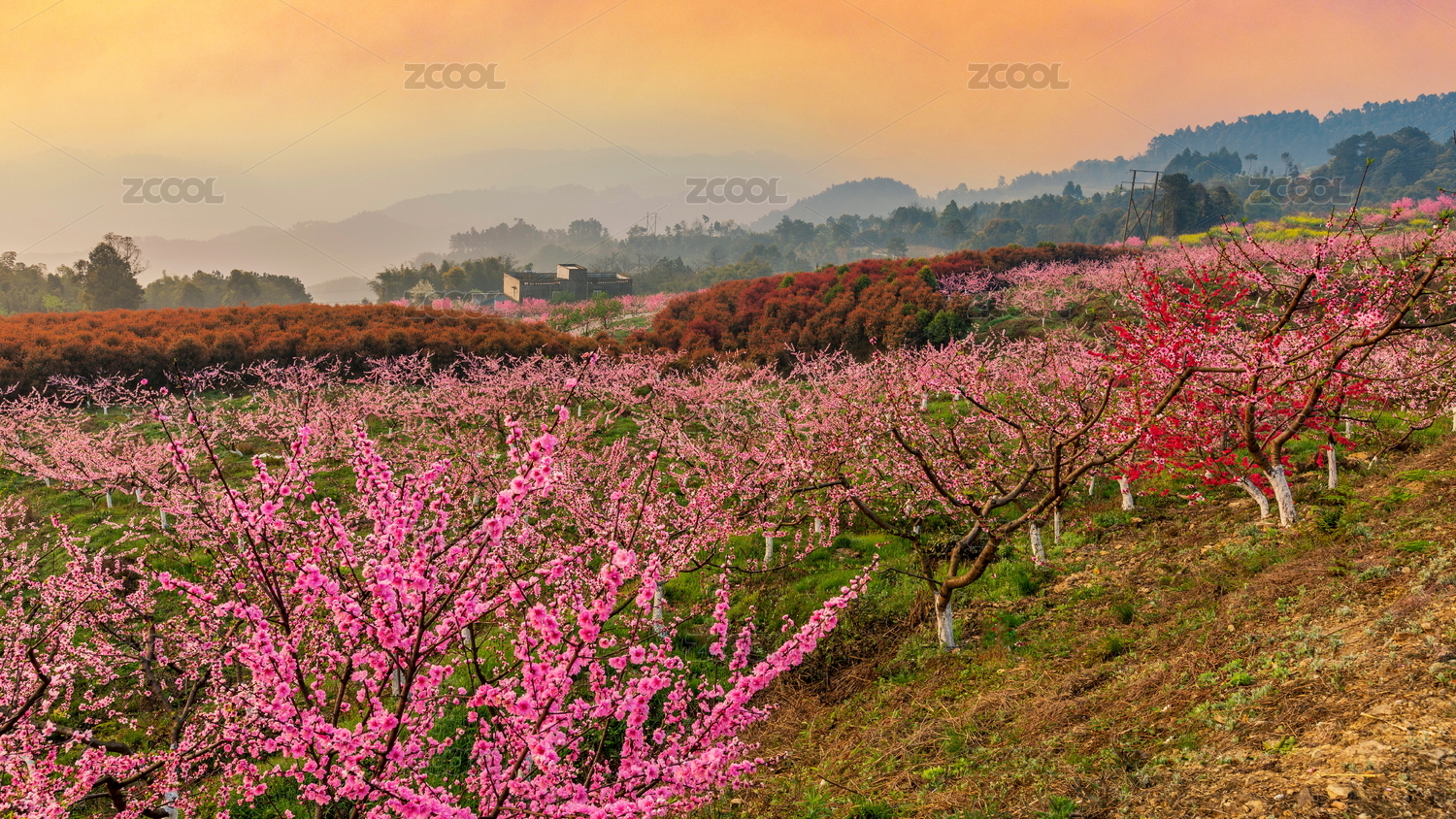中國四川宜賓七星山桃花園桃花盛開