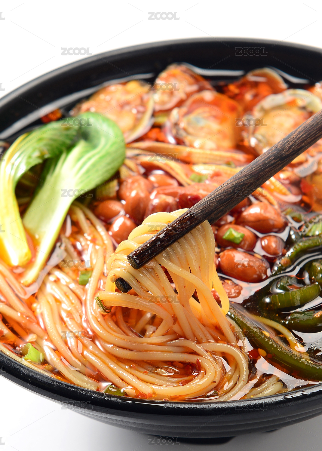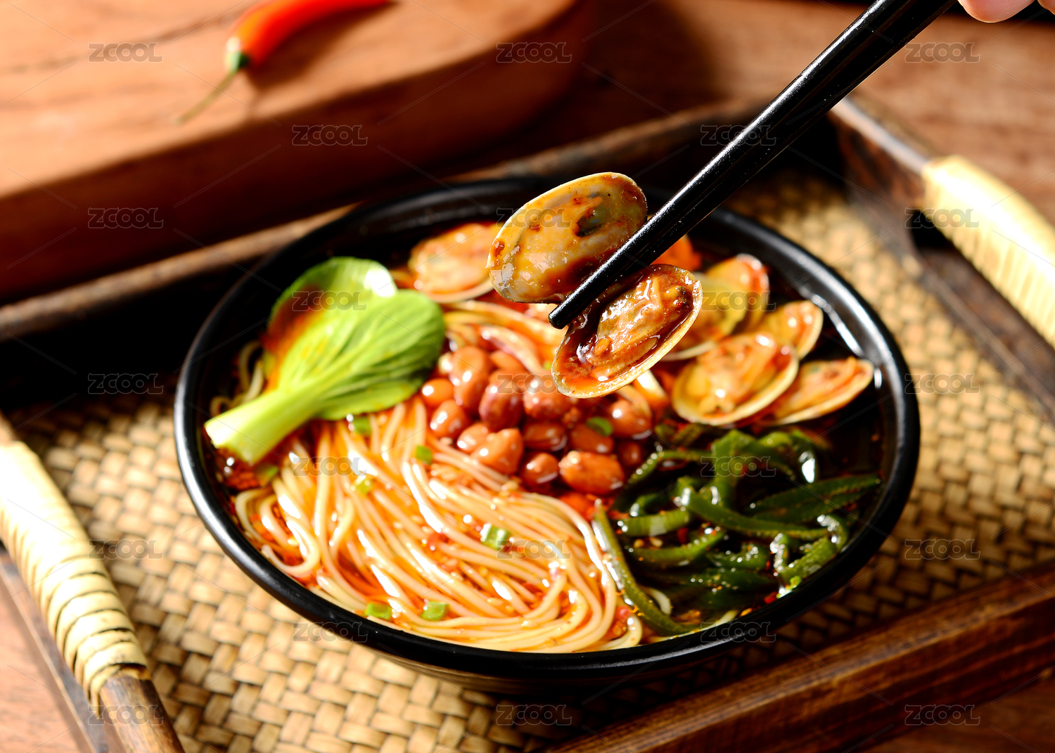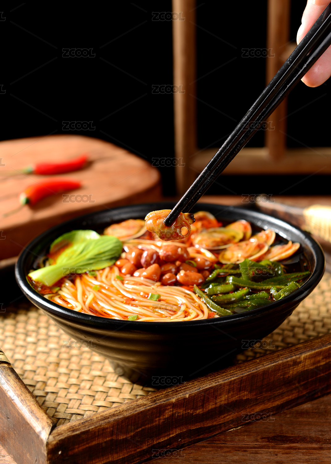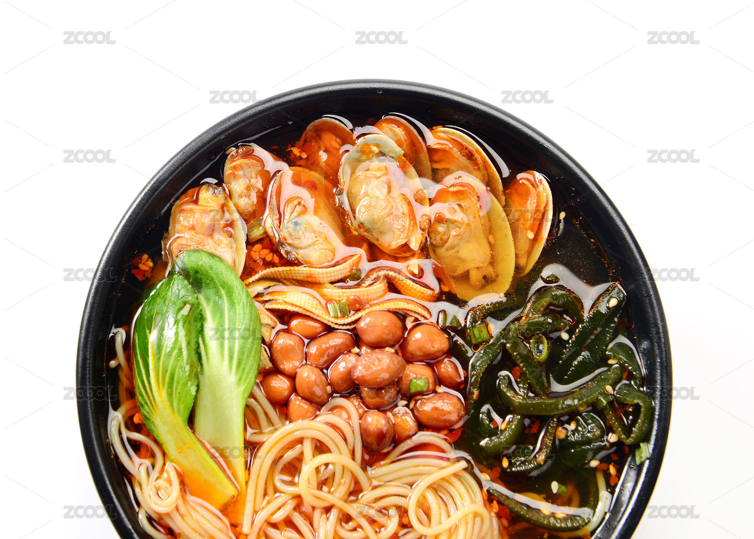 黑色碗里的麻辣鮮蝦海鮮米線(xiàn)