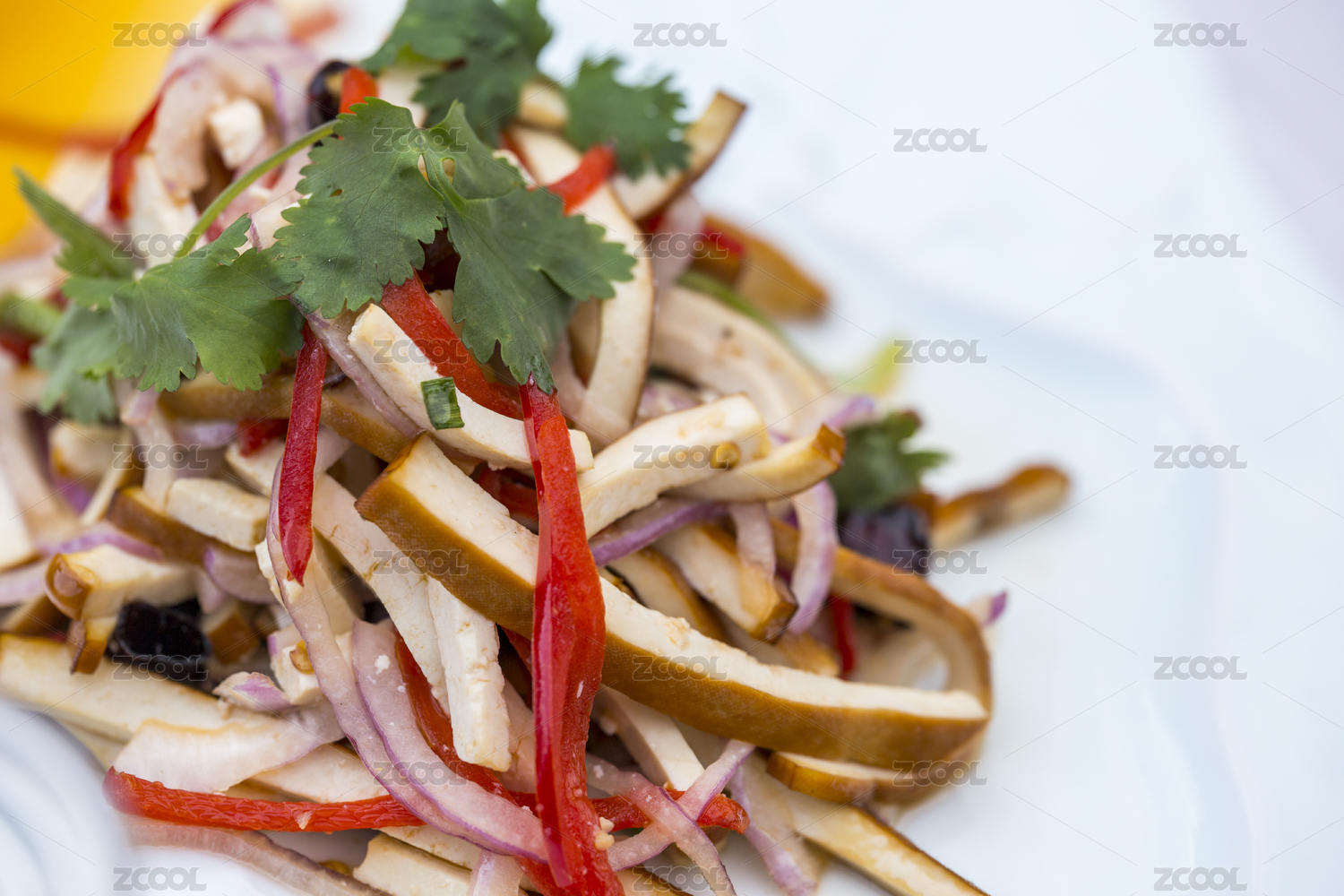 盤子里的涼菜涼拌菜蘸水蘸料菜涼拌豆干絲