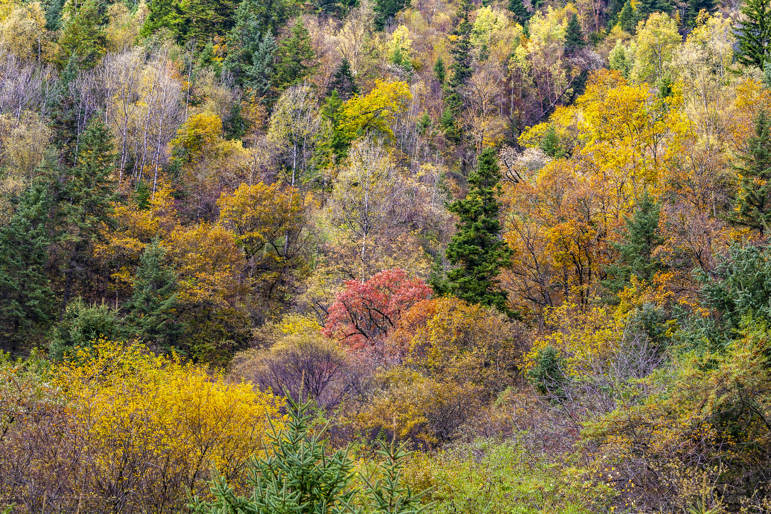 中國(guó)四川黑水縣卡龍溝原始森林金秋的風(fēng)光