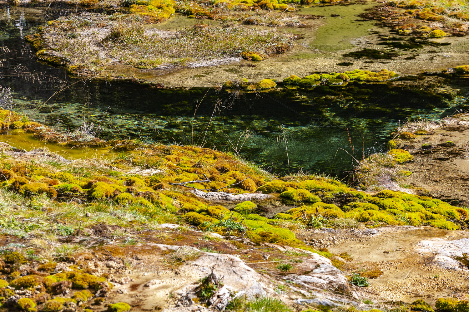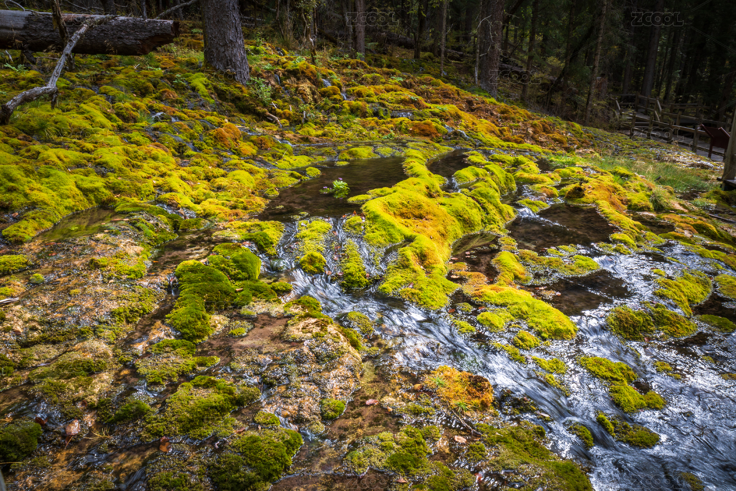 中國(guó)四川黑水縣卡龍溝景點(diǎn)仙女池邊的苔蘚