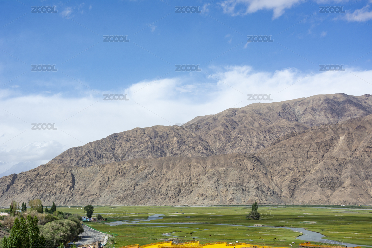 中國新疆塔什庫爾干塔吉克自治縣石頭城下的阿拉爾草灘秋季