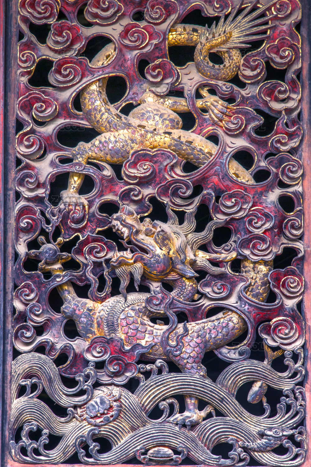 故宮里宮殿隔扇門上看葉的龍紋