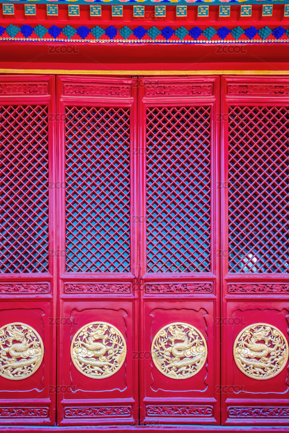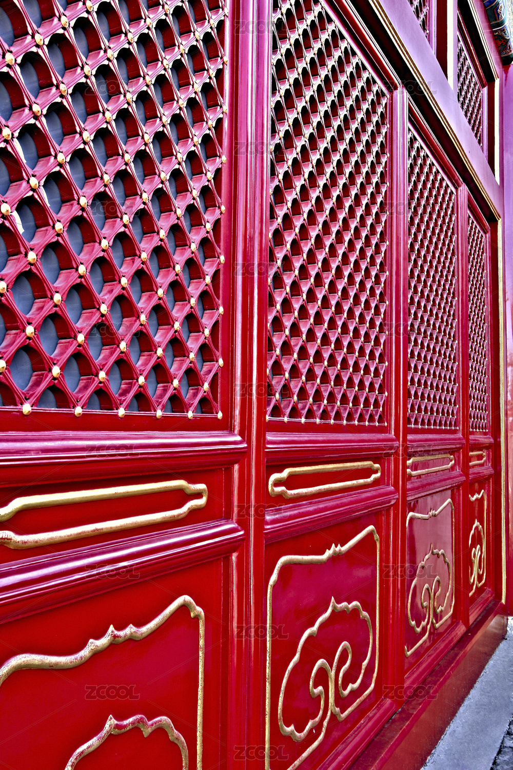 中國北京故宮宮殿里的朱漆隔扇門
