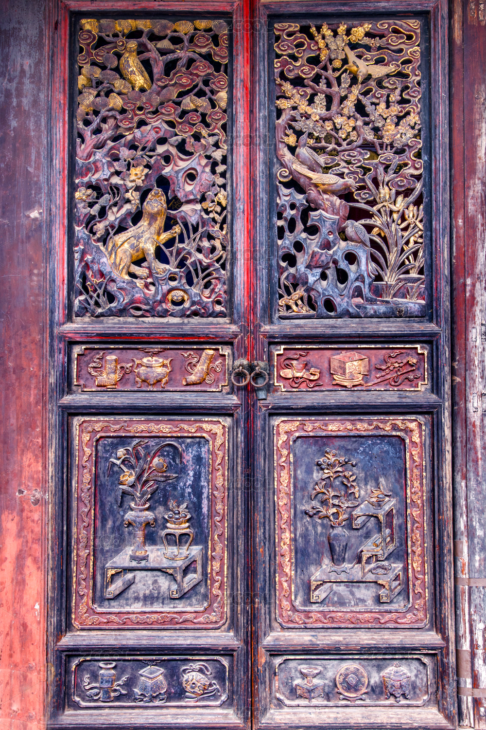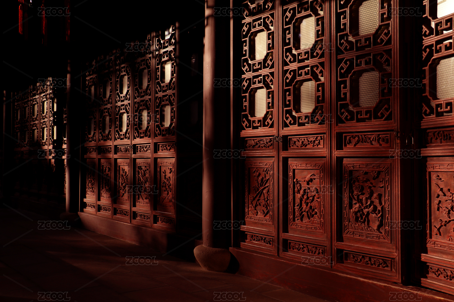 中式紅色隔扇門窗