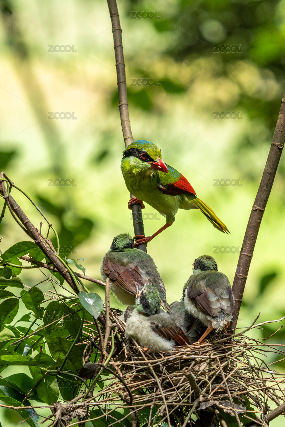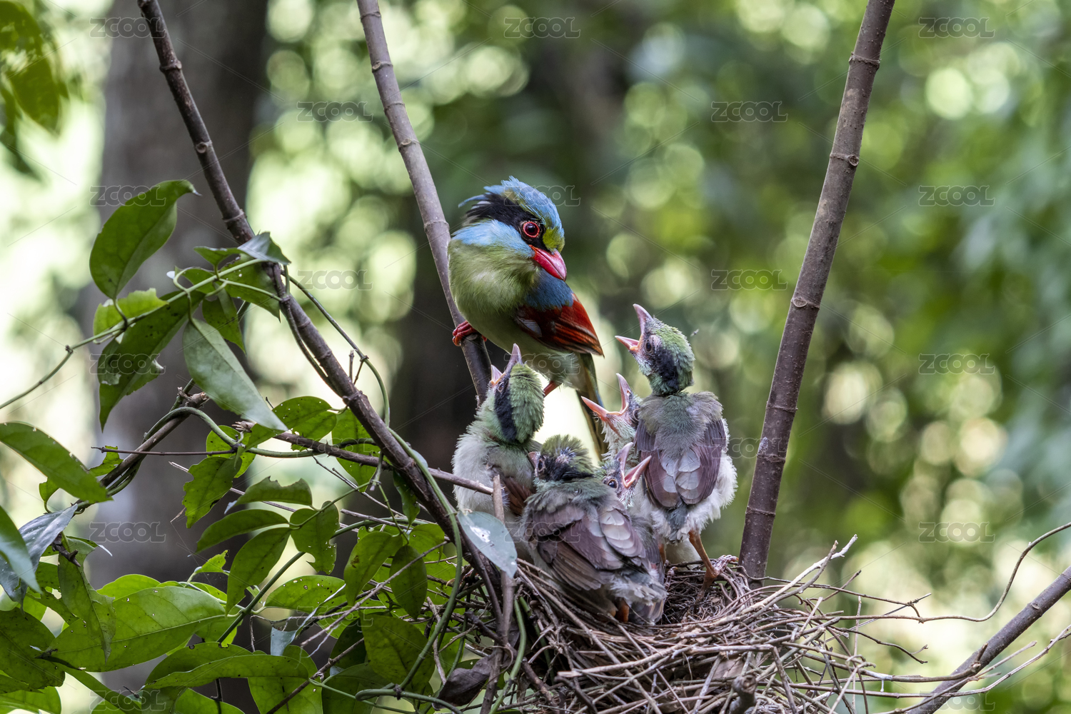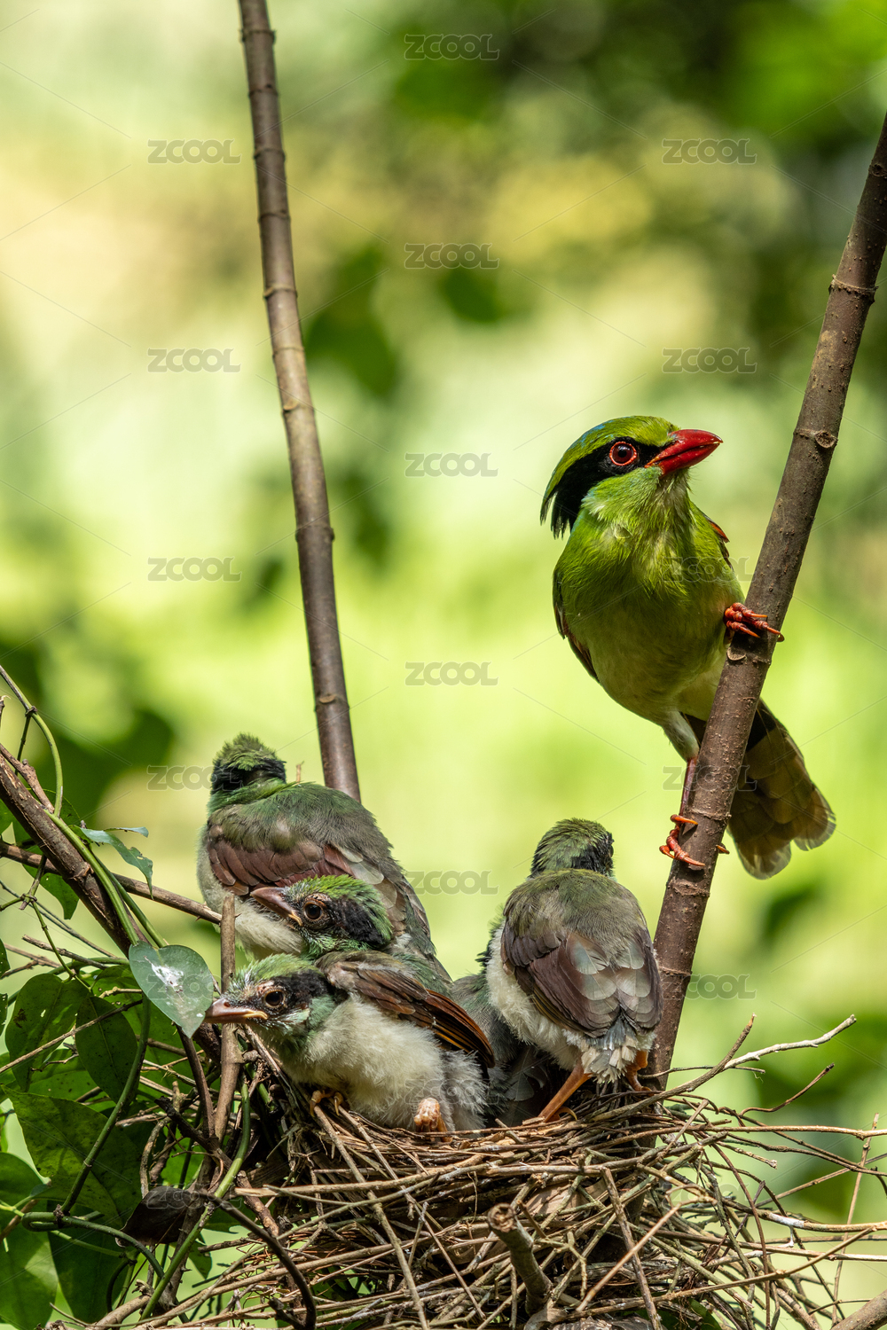 印支綠鵲哺育雛鳥過程記錄