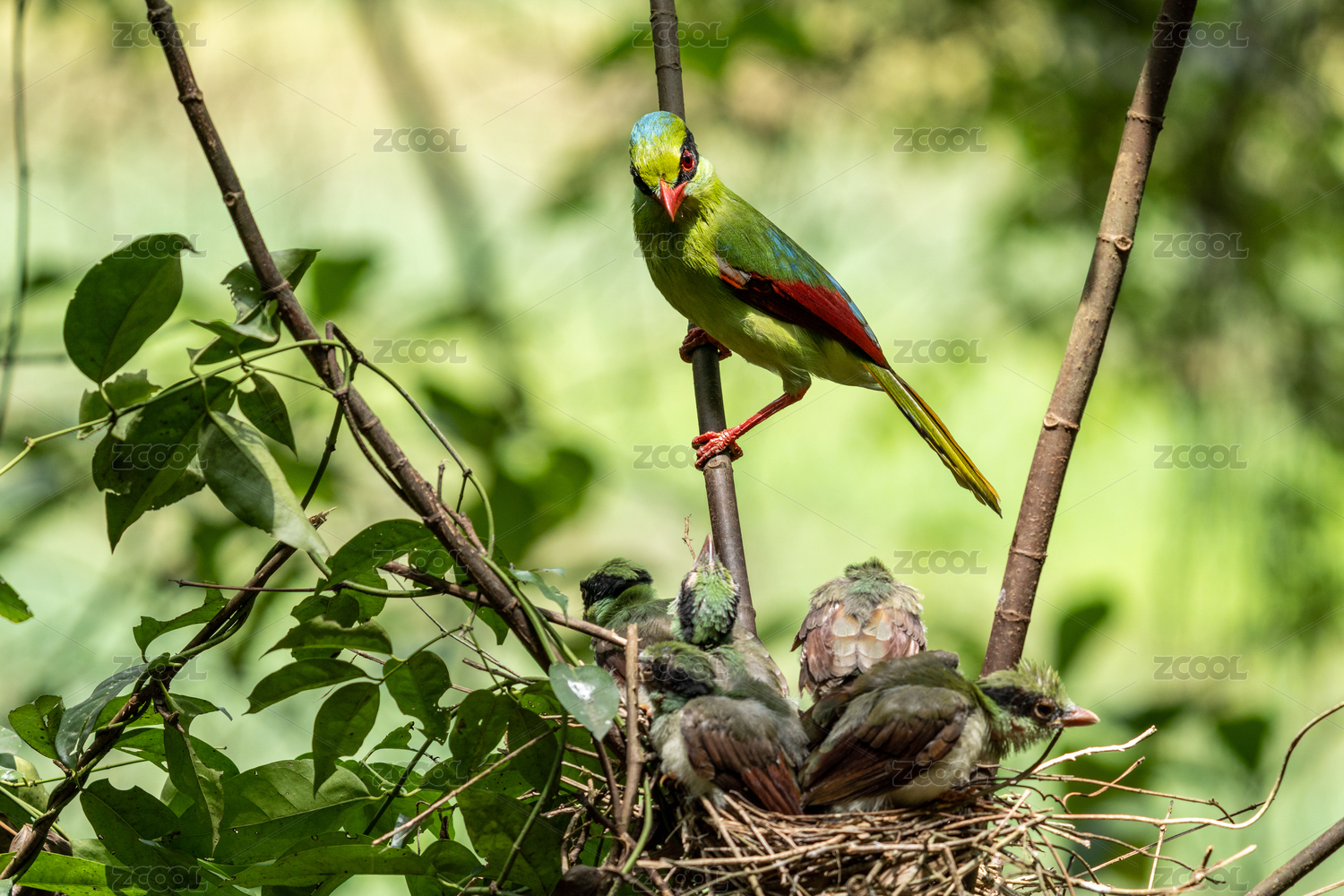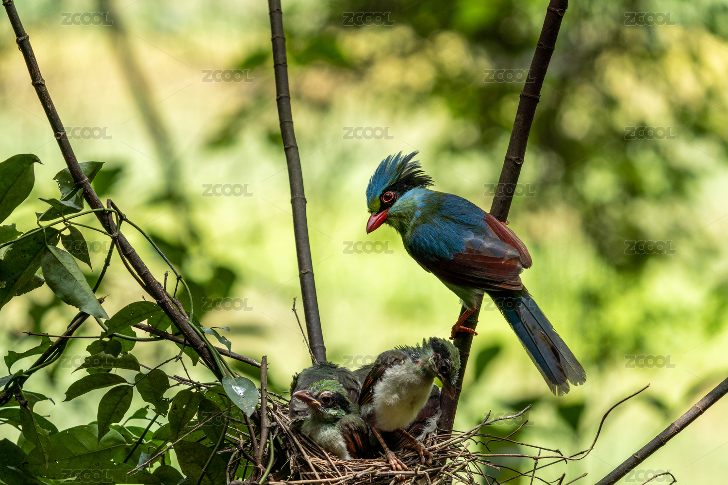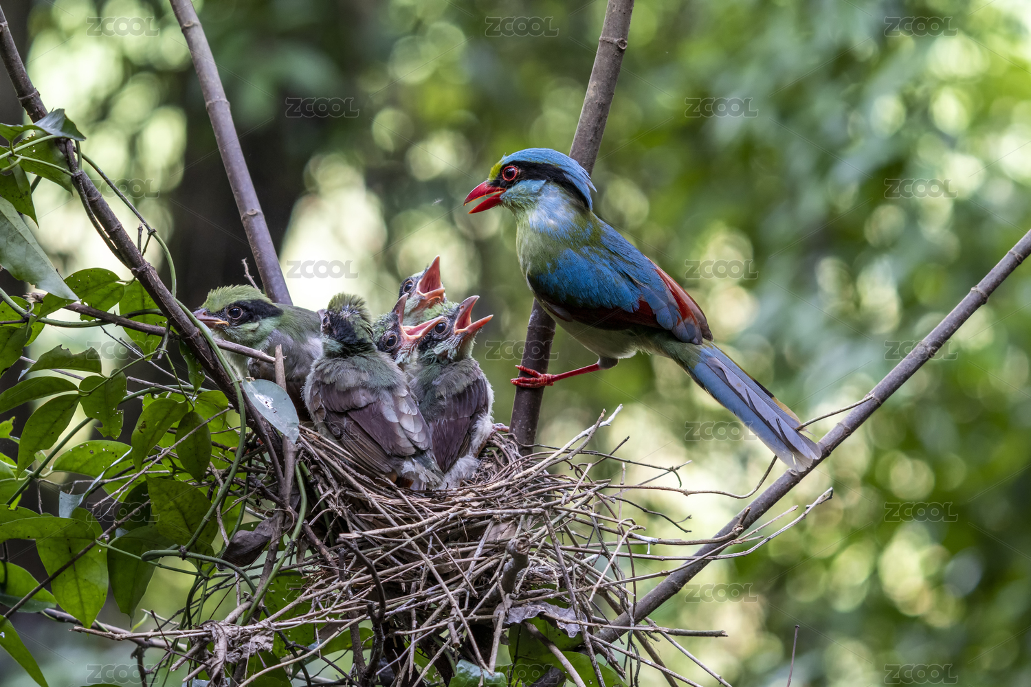 印支綠鵲哺育雛鳥過程記錄