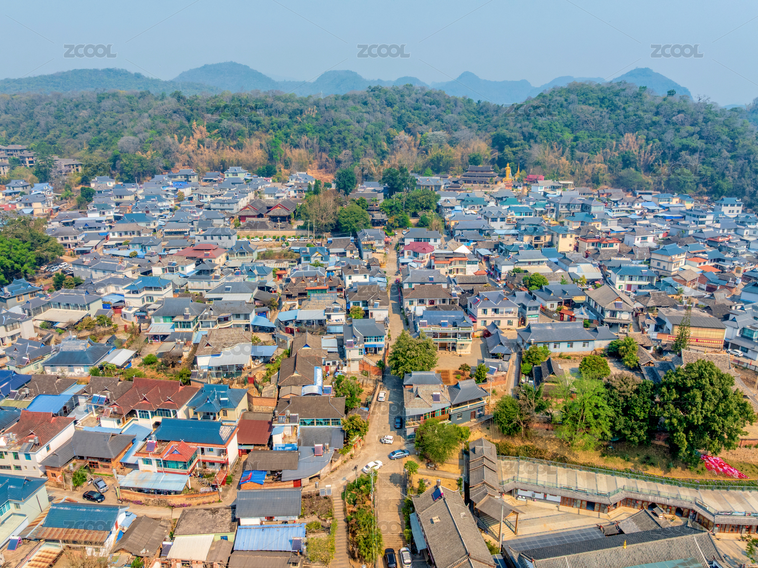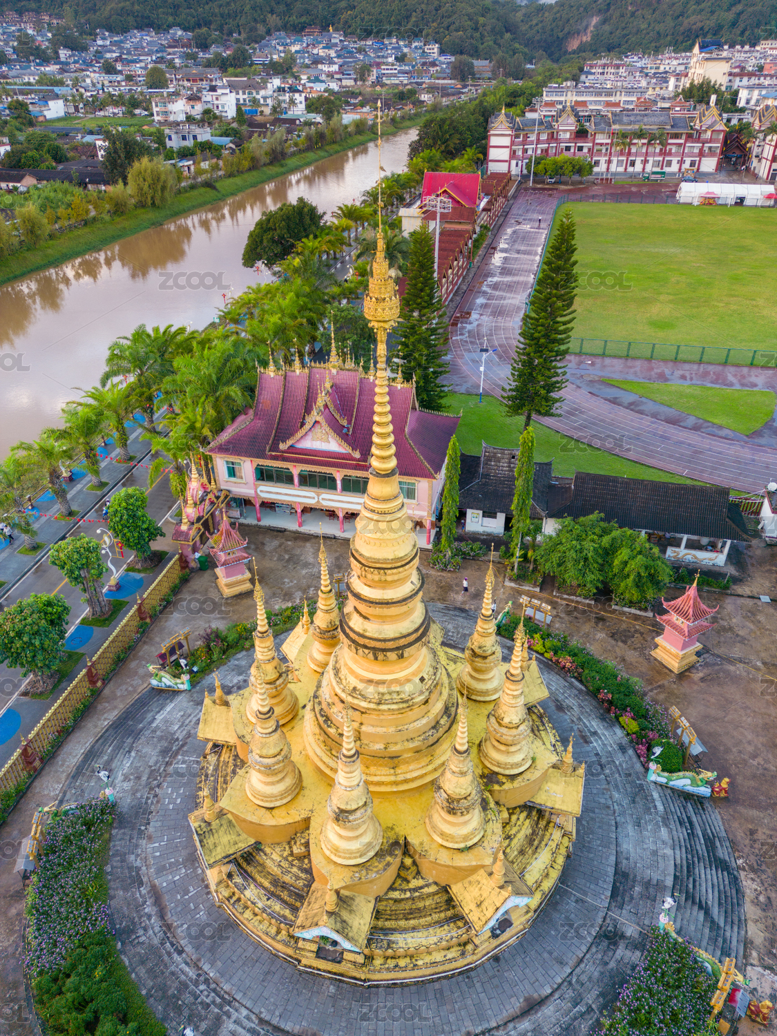 中國云南普洱娜允古鎮(zhèn)孟連總佛寺航拍風(fēng)光