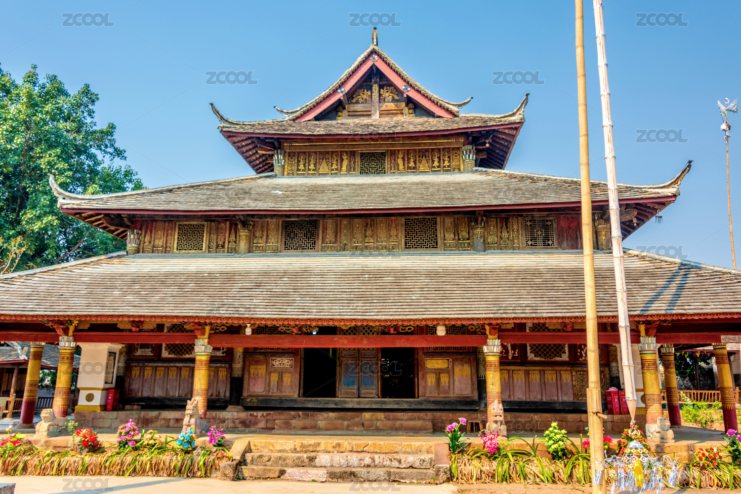 云南普洱娜允古鎮(zhèn)的孟連總佛寺的佛堂側(cè)面