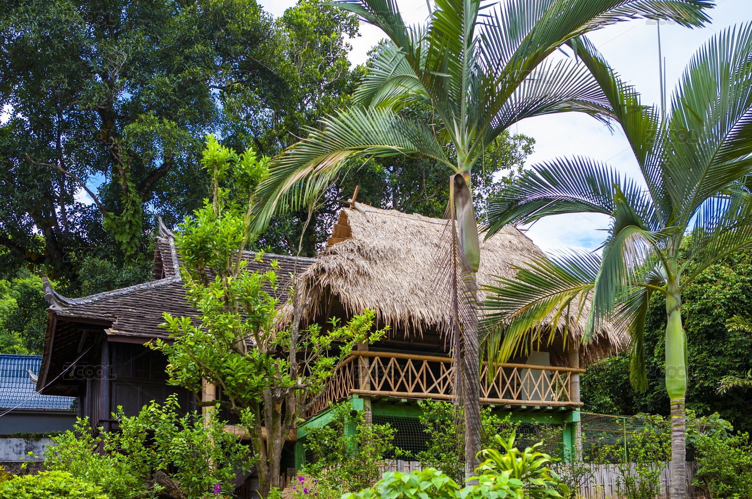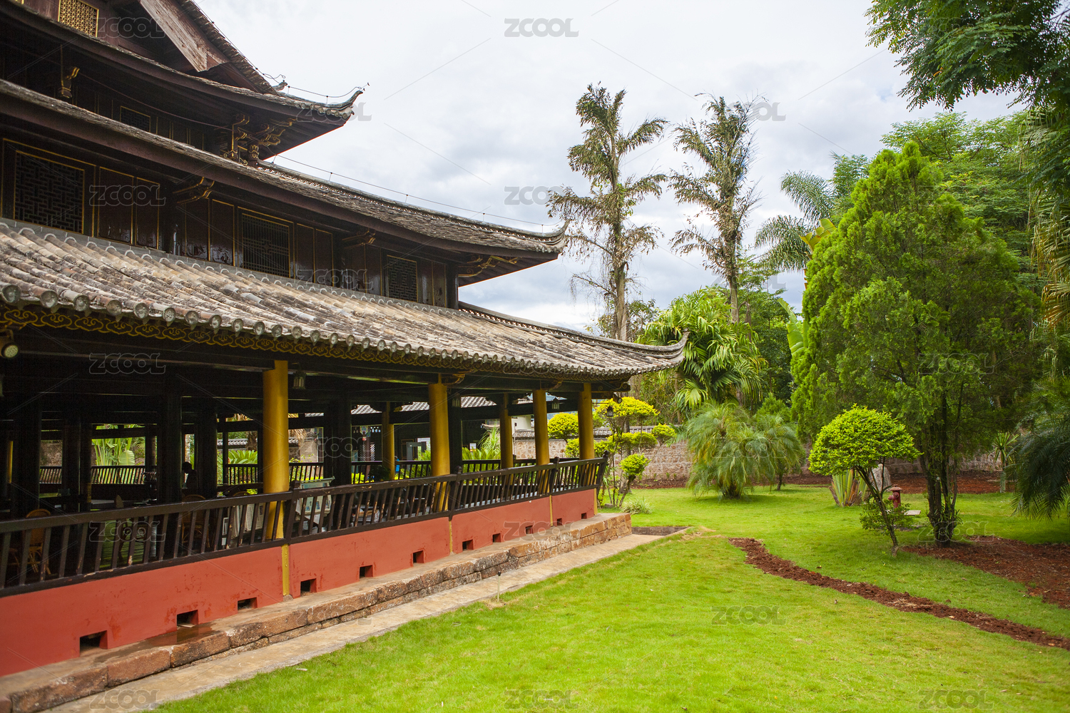 普洱娜允古鎮(zhèn)的孟連總佛寺的熱帶風(fēng)情花園