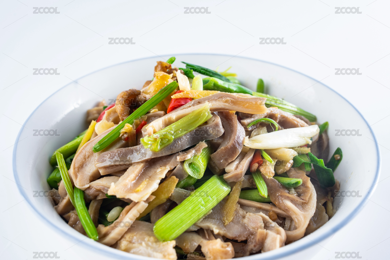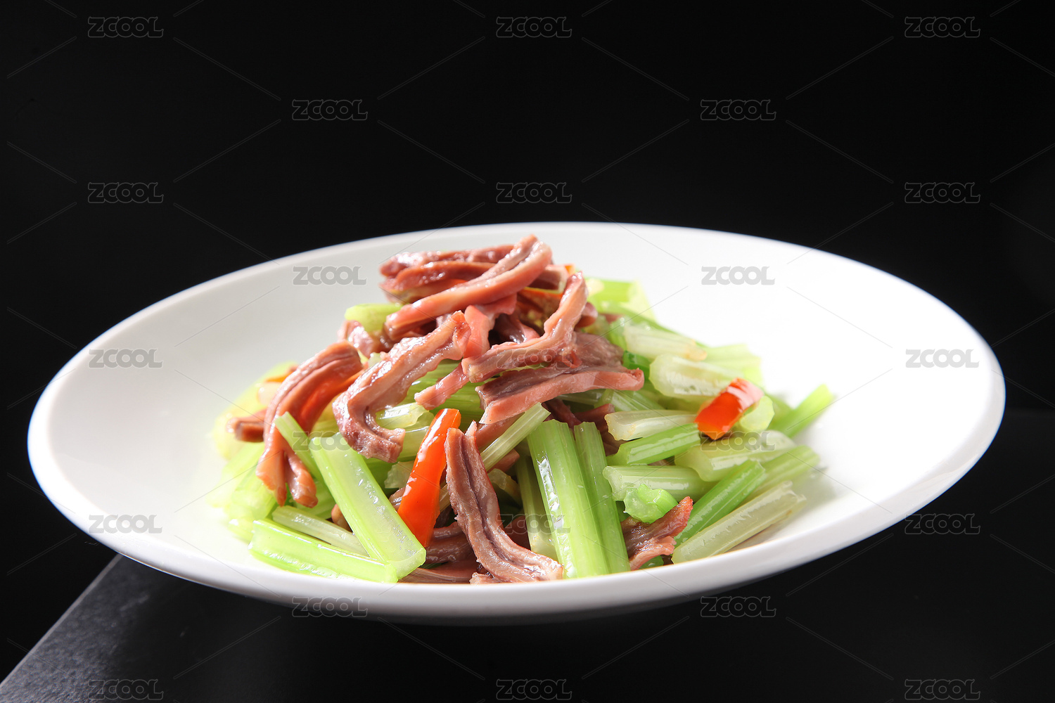 白背景上一碟家常菜芹菜炒豬肚