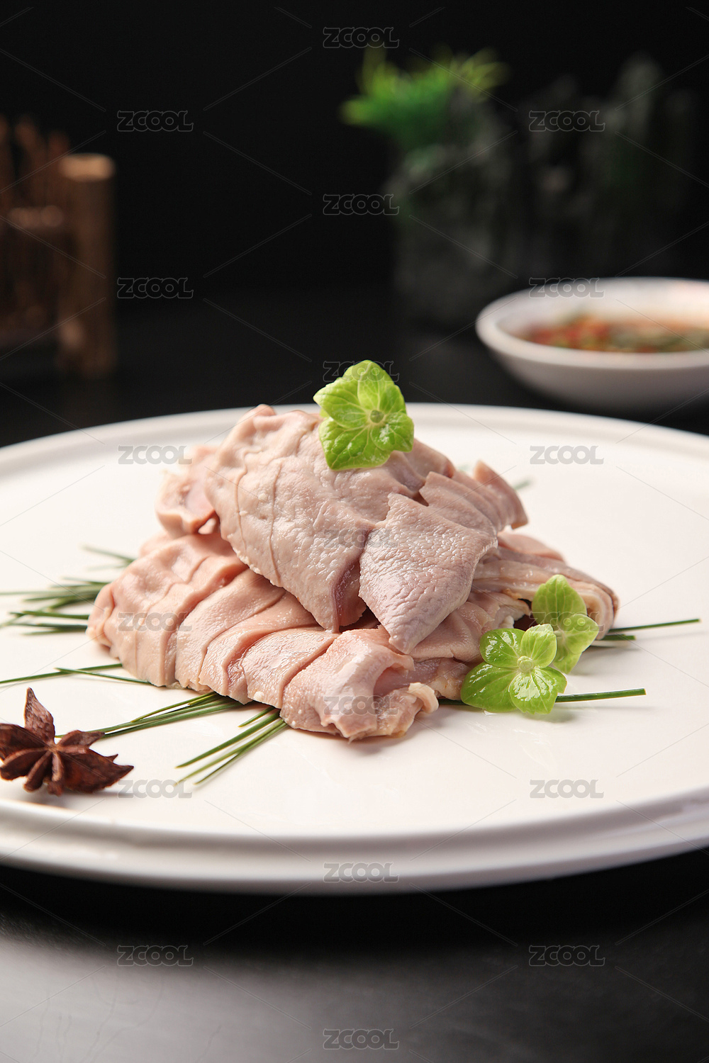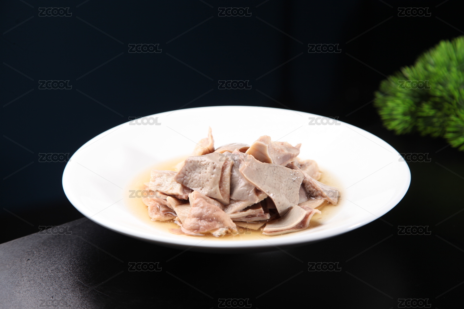 白瓷盤(pán)盛放的廣式黑椒豬肚