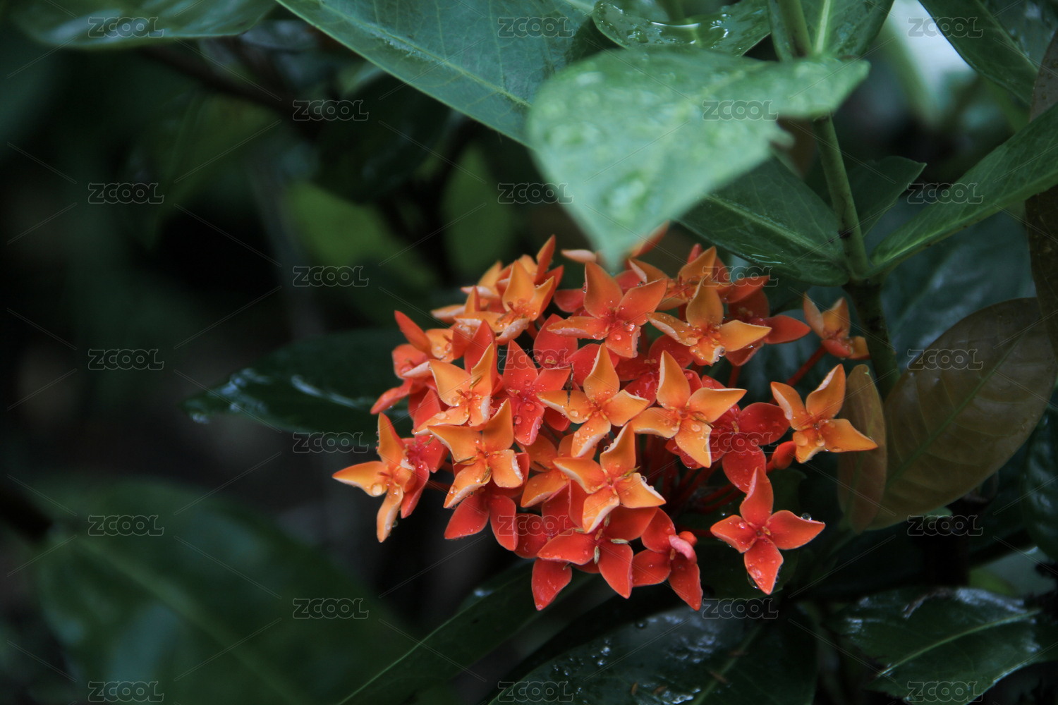 夏日綠葉襯托下的橙色龍船花
