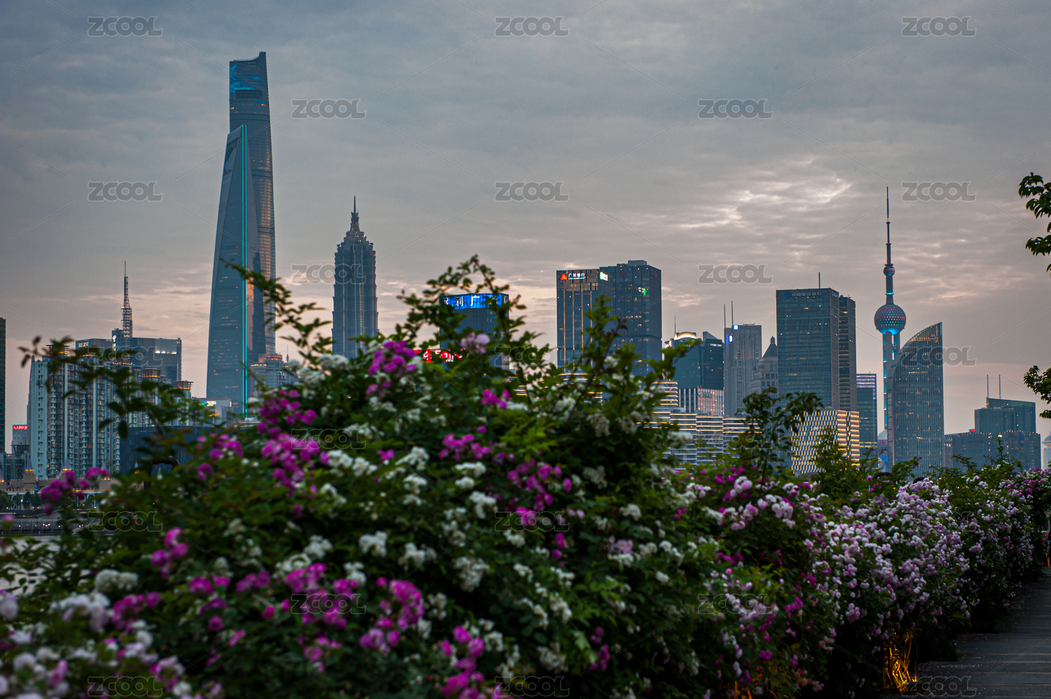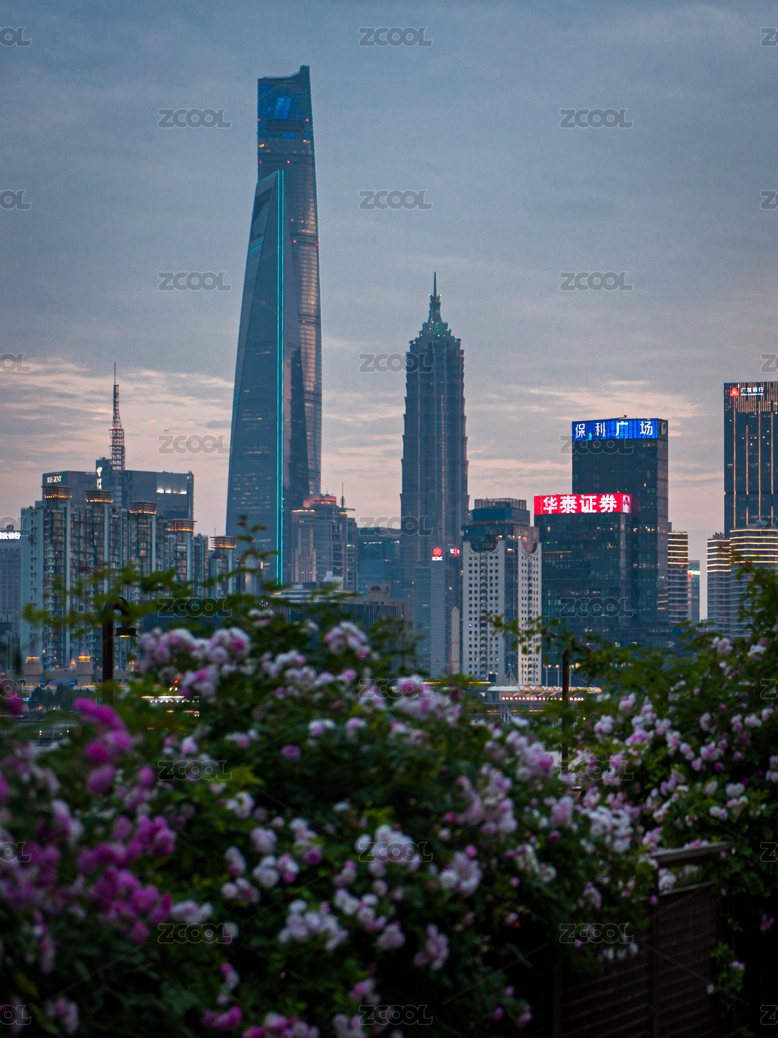薔薇映陸家嘴晚霞