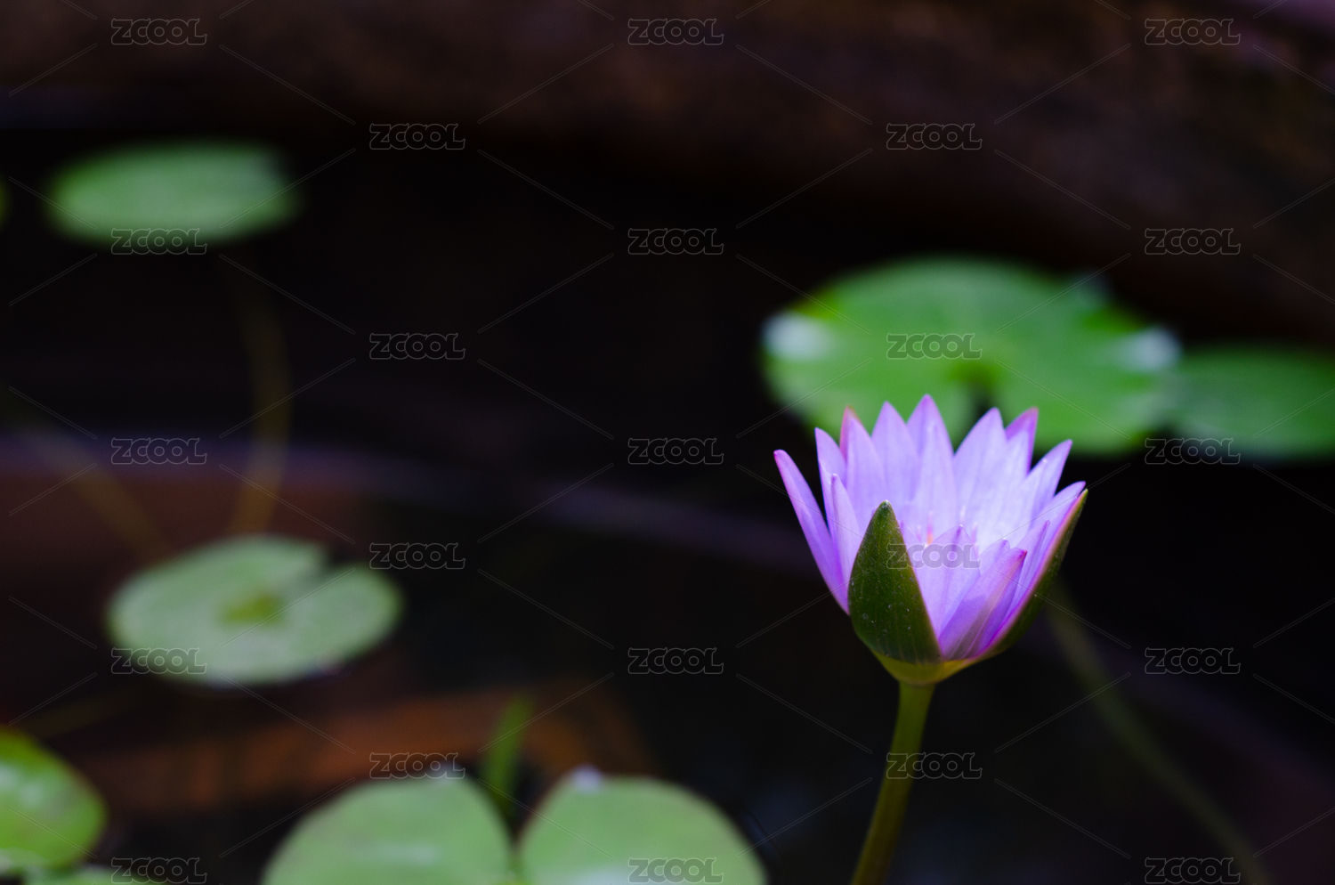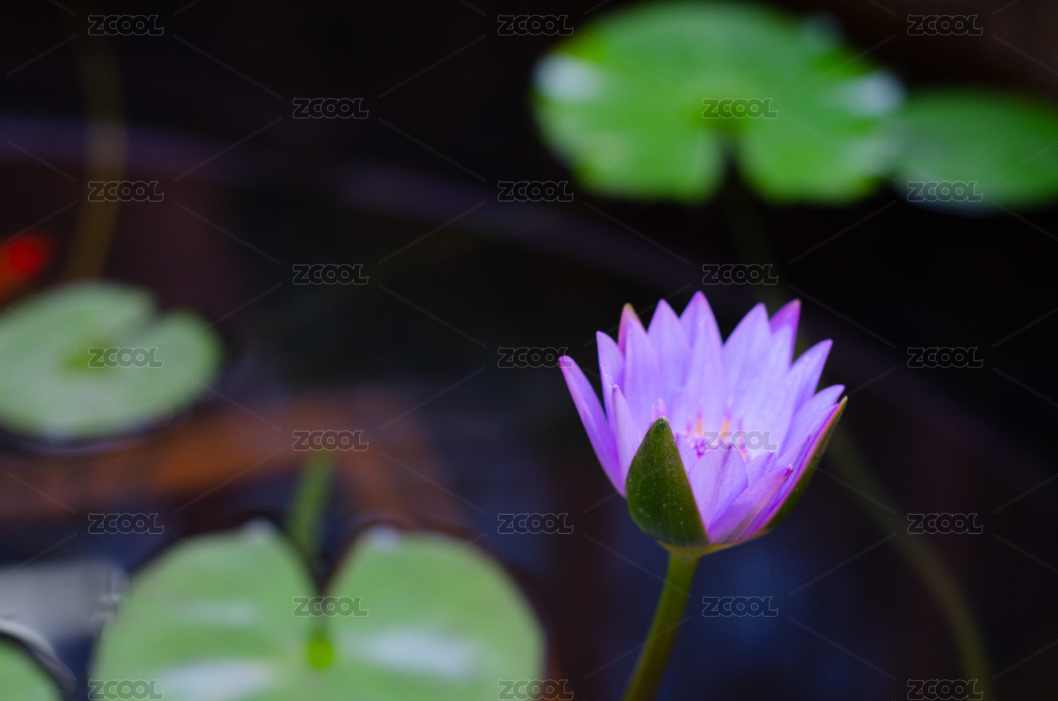 水池中一朵紫色睡蓮