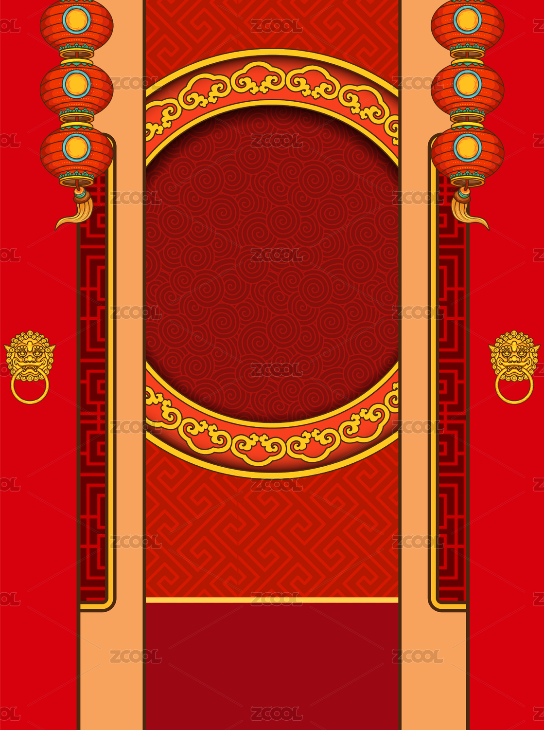 中國傳統(tǒng)矢量開門紅燈籠圓形花框背景裝飾