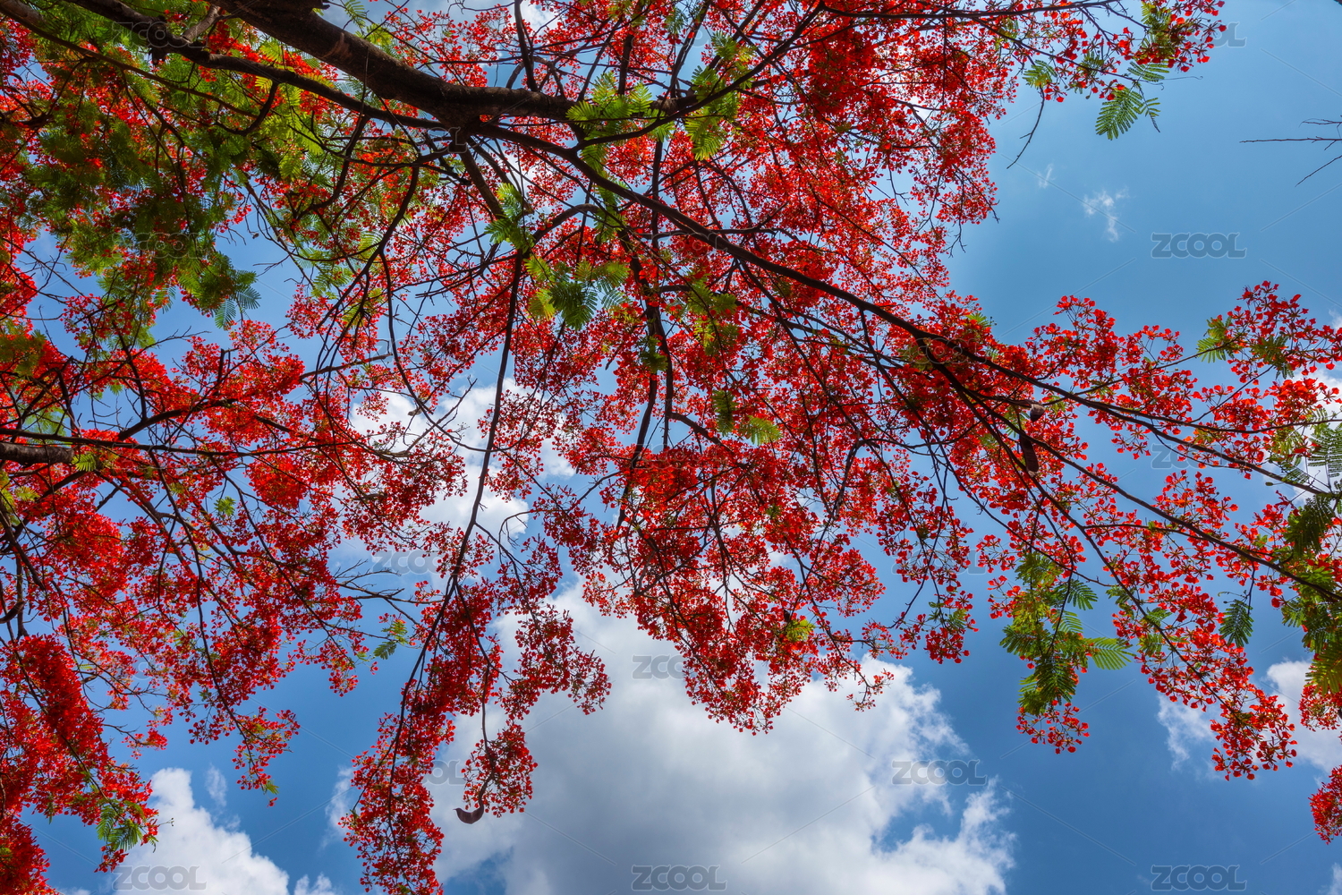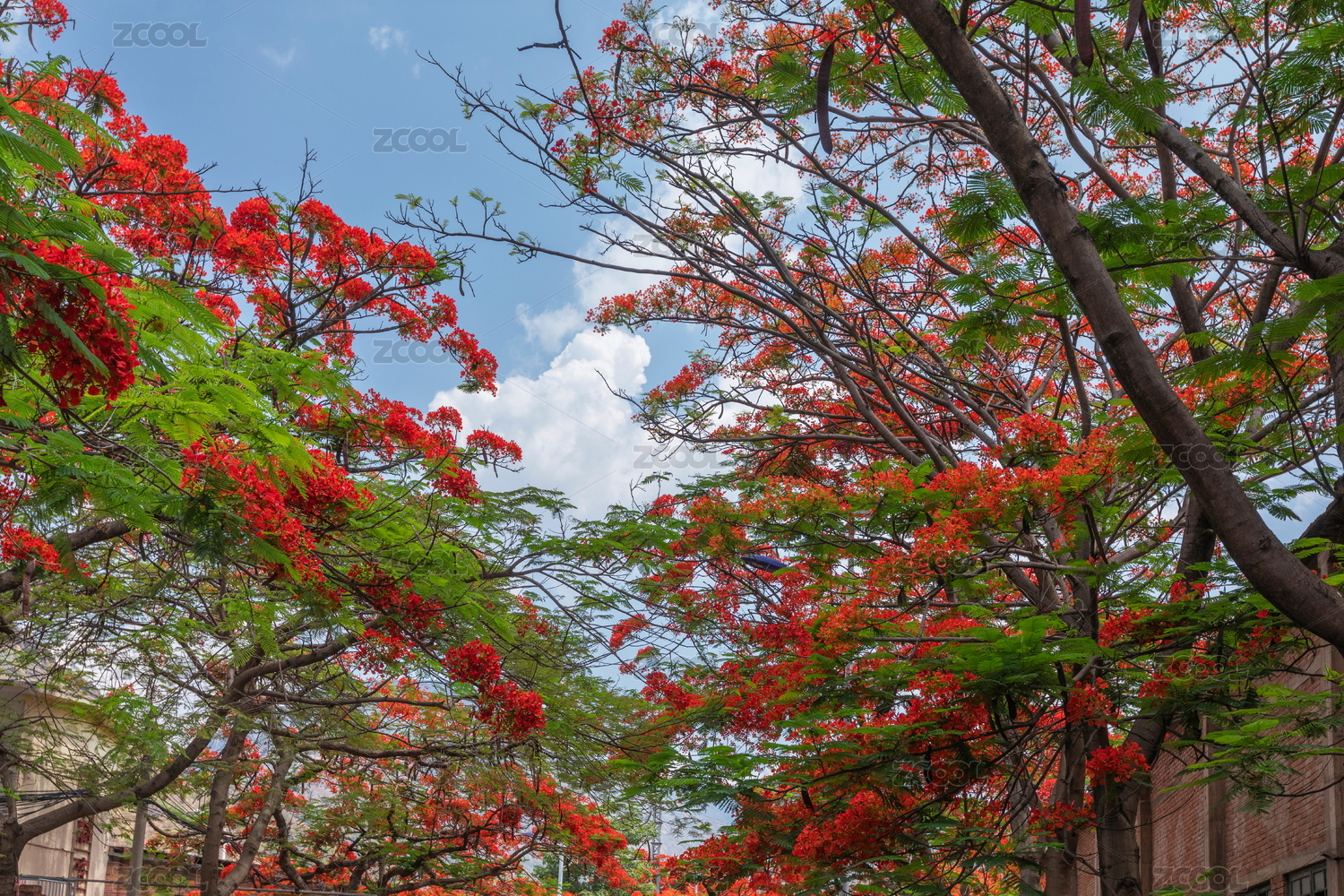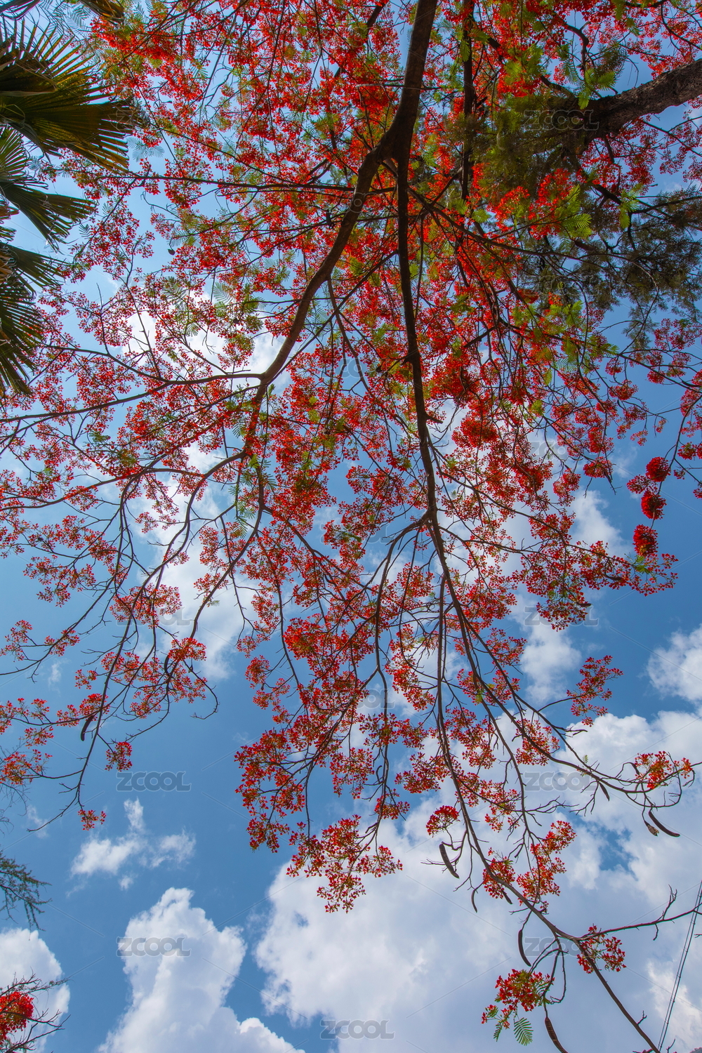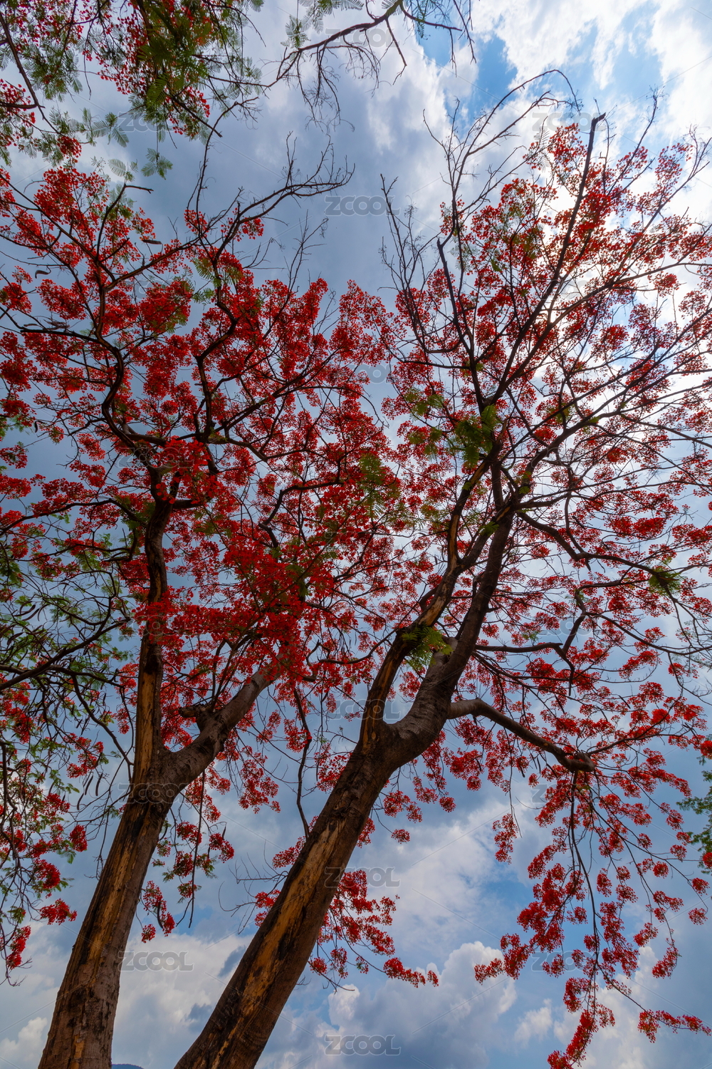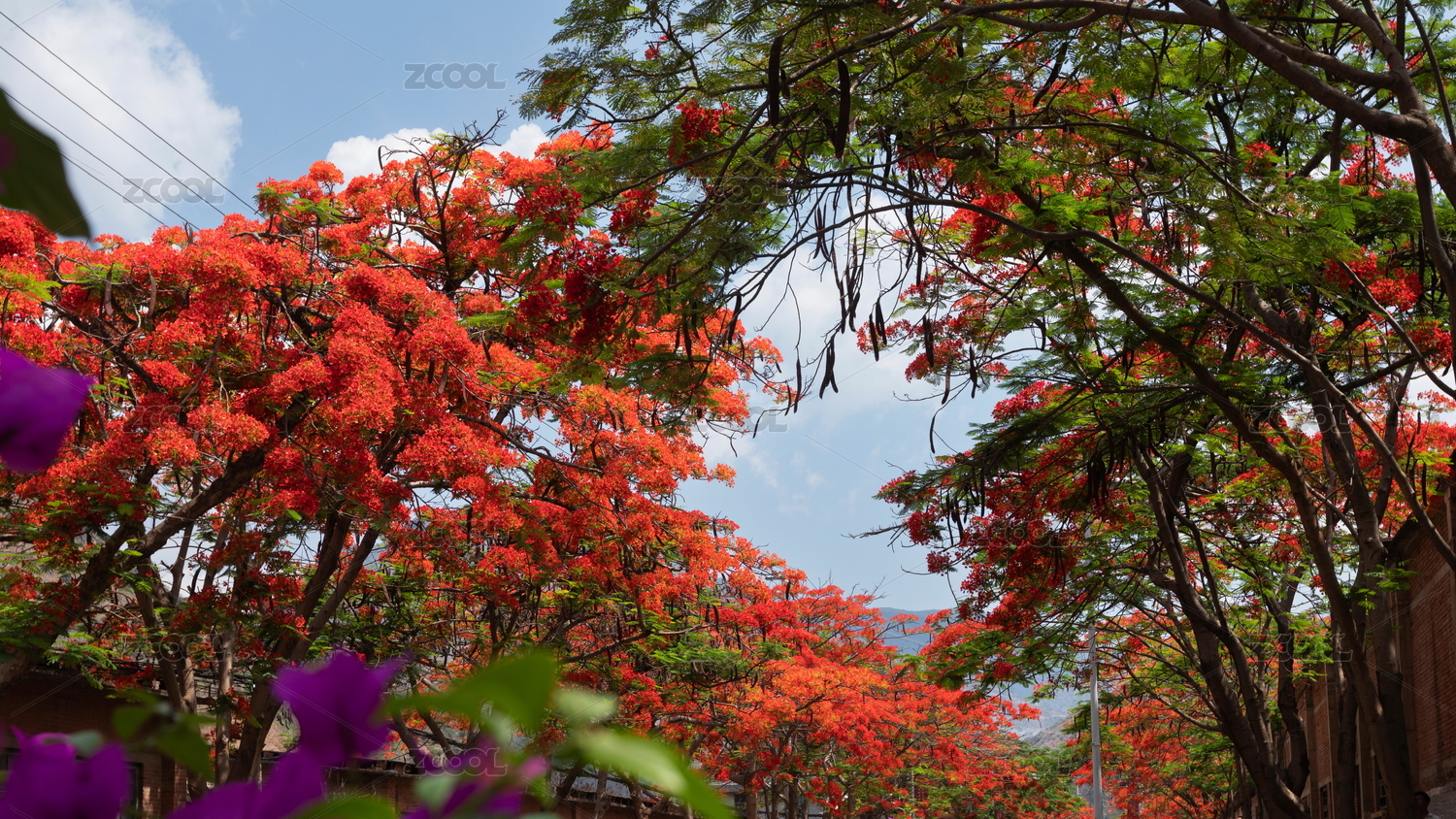 云南玉溪綠汁鎮(zhèn)藍(lán)天白云鳳凰花