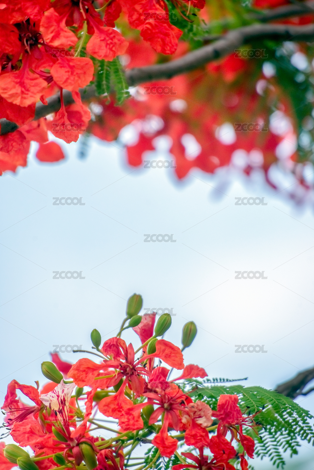 夏天盛開的紅艷艷的鳳凰花背景邊框