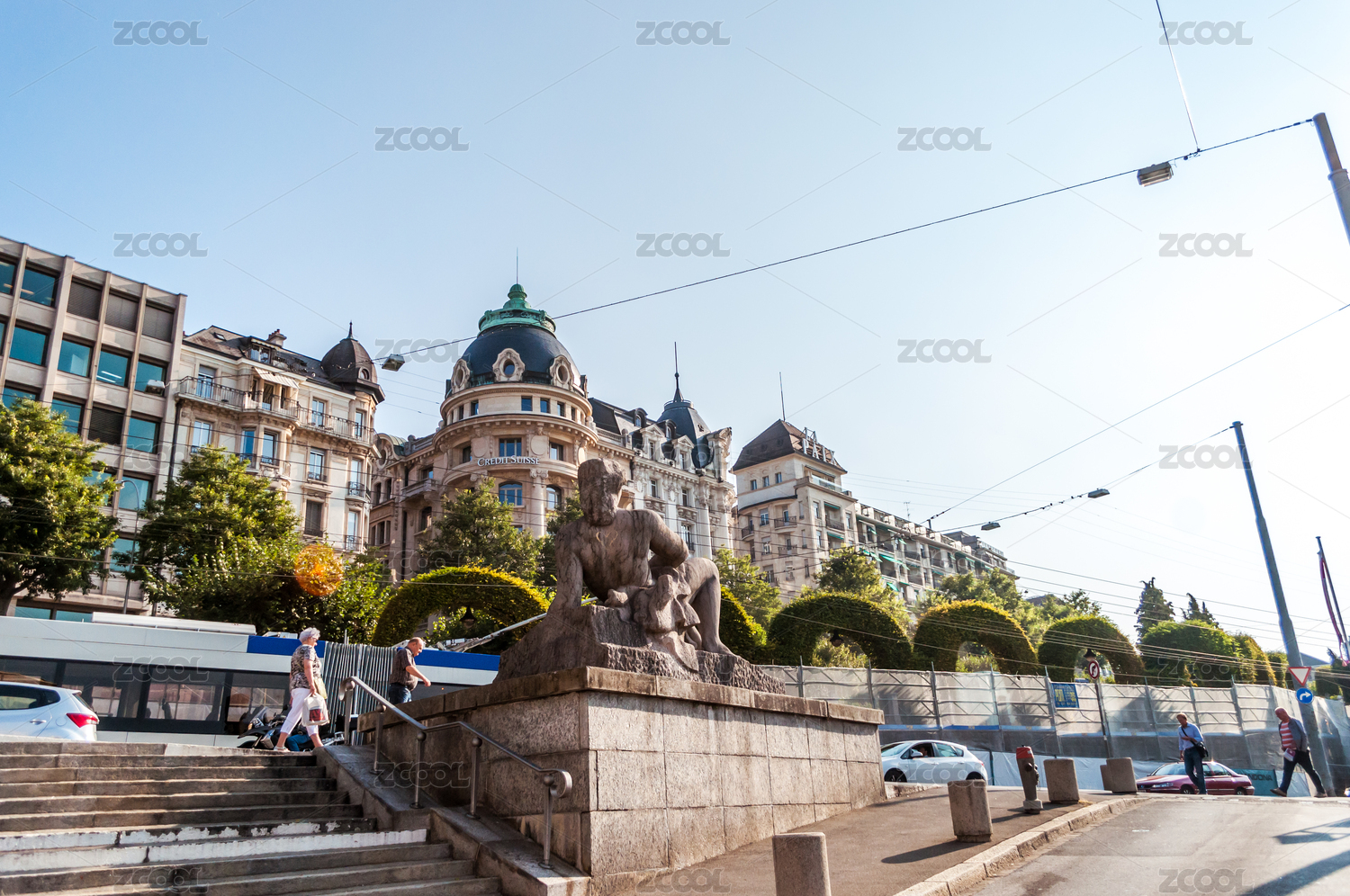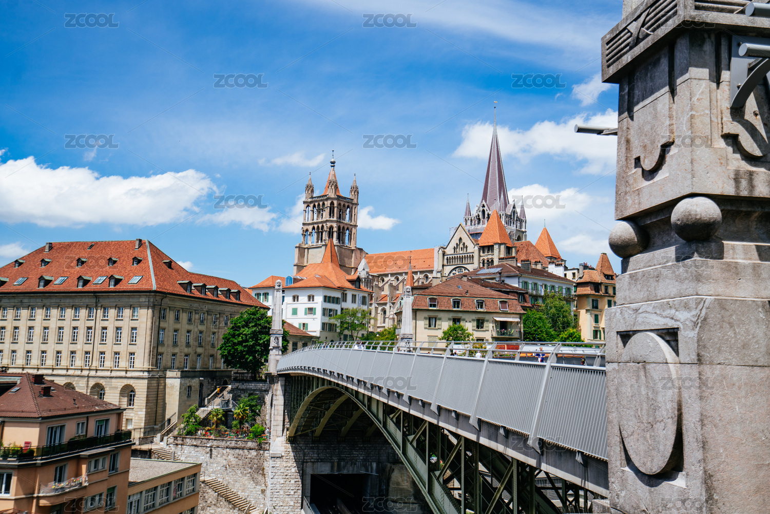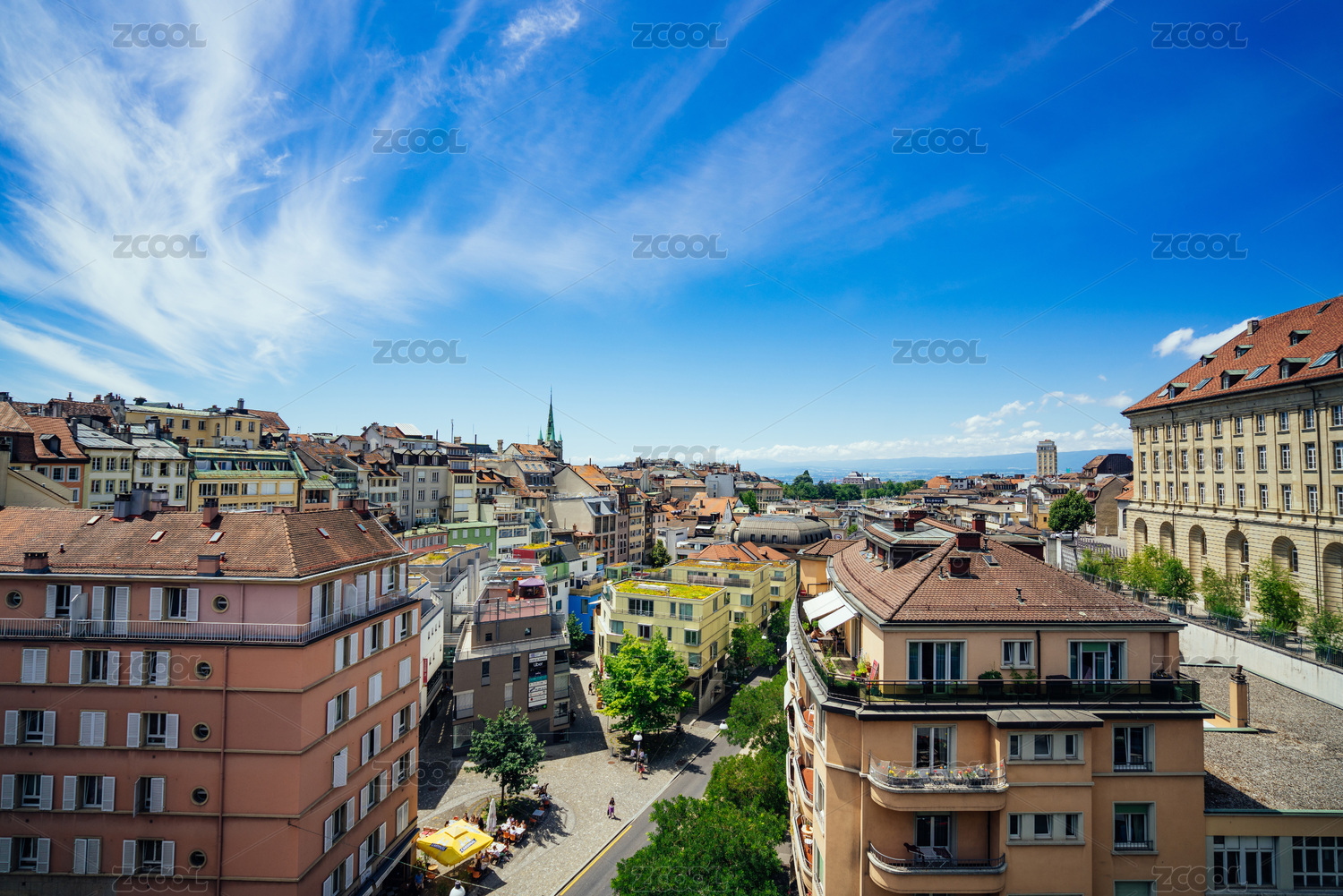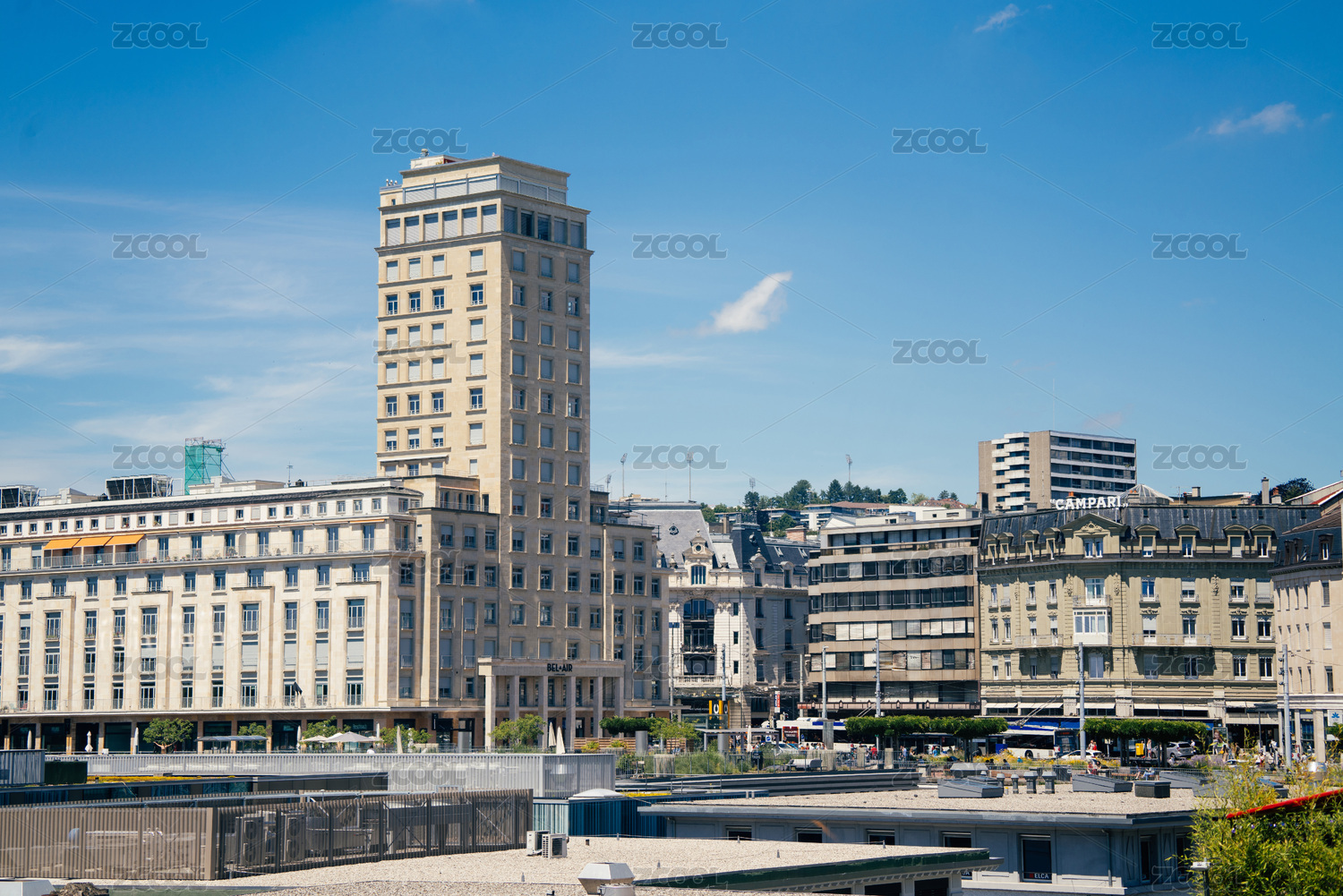 瑞士洛桑市城市風光,著名的貝萊爾塔建筑