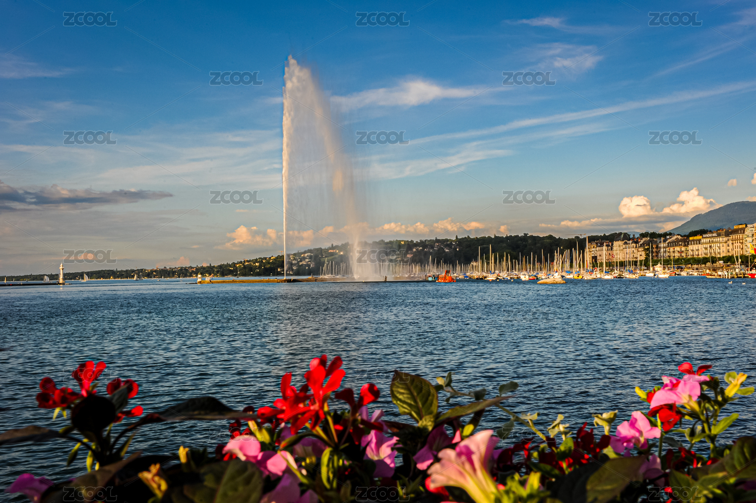 六月洛桑大噴泉與日內(nèi)瓦湖景