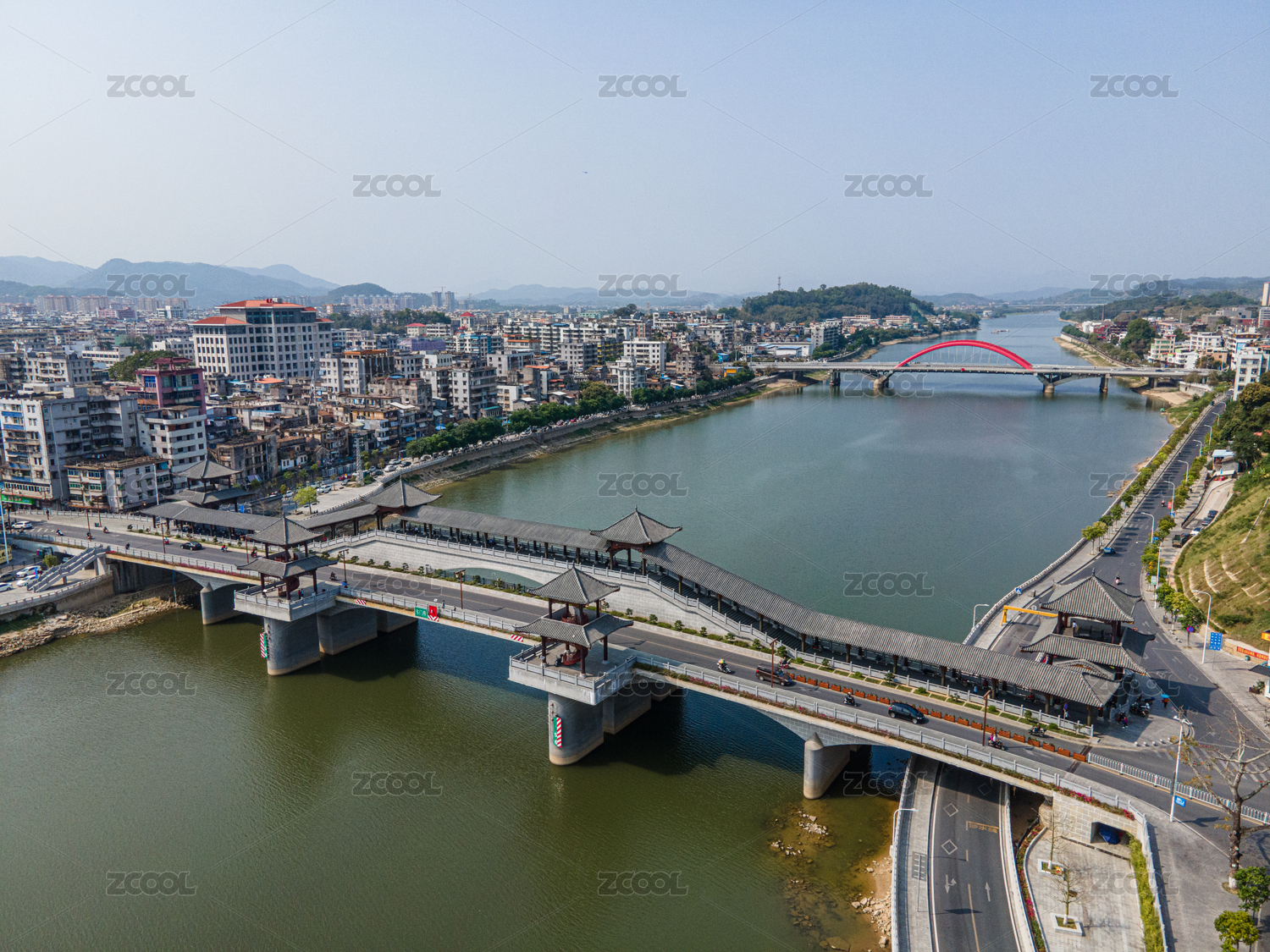 航拍廣州增城區(qū)東門橋建筑風(fēng)光